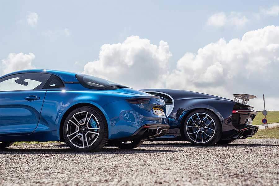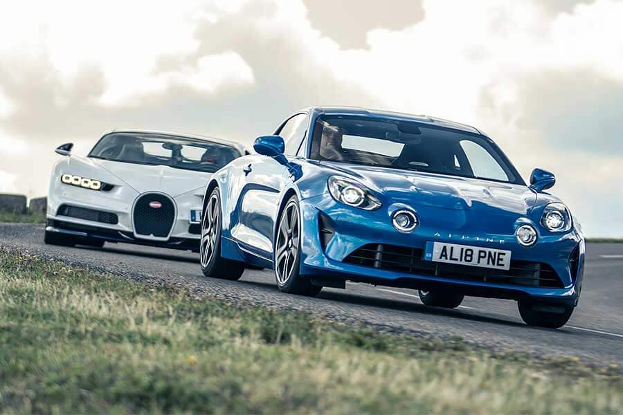 Bugatti和Alpine雖然同樣聲稱擁有法國國籍,兩家處理這門動力生意的手法卻南轅北轍各走極端。前者的Chiron索價250萬英鎊(抵得上50部Alpine A110),身負一具力能產生1,479hp和163.2kgm的8.0公升四渦輪增壓W16引擎;後者的A110則有一具動力輸出僅及Chiron六分一的1.8公升渦輪增壓四汽缸引擎,但體重大約只有Chiron一半,車身寬度差不多比Chiron少一英呎。不過它們都用高明手法達成與對方大相逕庭卻又同樣非常獨到的目標:Chiron是一件問心無愧毫不計較金錢的瑰寶,A110則來自一個每一克重量都要斤斤計較的世界。