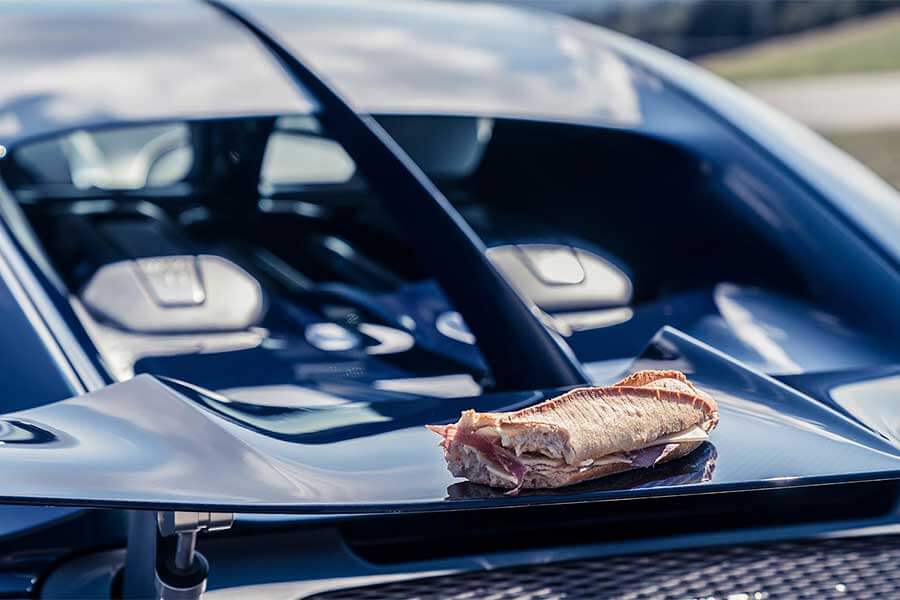 譬如風馳電掣的Chiron,每分鐘吸入的空氣可達60,000公升,所泵送的冷卻液多達800公升(相當於每十二秒鐘注滿一個浴缸);每個車輪的充氣閥蓋僅重2.5克,在極速狀態的離心力作用下卻重達7.5公斤。此外,你若有本事找到長度足夠的筆直道路,Chiron就有本事用6分49秒吸光油缸。為了清理廢氣,Chiron總共動用了六個催化轉換器,轉換器的內部面積加起來相當於三十個正規足球場。至於那個人所共知的Macaron車頭徽章,本身重量只有150克,不過當中140克原來是純銀。個人最喜歡的一點則是行李艙容量不外乎44公升,略多於我前一天搭乘廉價航班來法國時的行李上限。