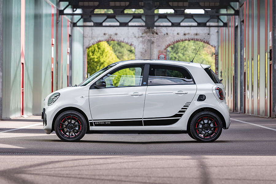 smart EQ fortwo、smart EQ fortwo cabrio與smart EQ forfour三車型僅有單一動力選項,負責驅動的電動馬達可輸出82hp(60kW)馬力、16.3kgm扭力,極速均為130km/h。17.6kWh的鋰電池滿電狀態下,根據NEFZ標準約有140-159公里續航能力,而且還有多少能增加些里程數的煞車回充功能,因此對於大多數的smart車主應該已經足夠。如果選配22kW的車載快速充電器,電池10-80%充電只需40分鐘,使用230V的家用壁掛式充電盒則需要5個鐘頭以上。