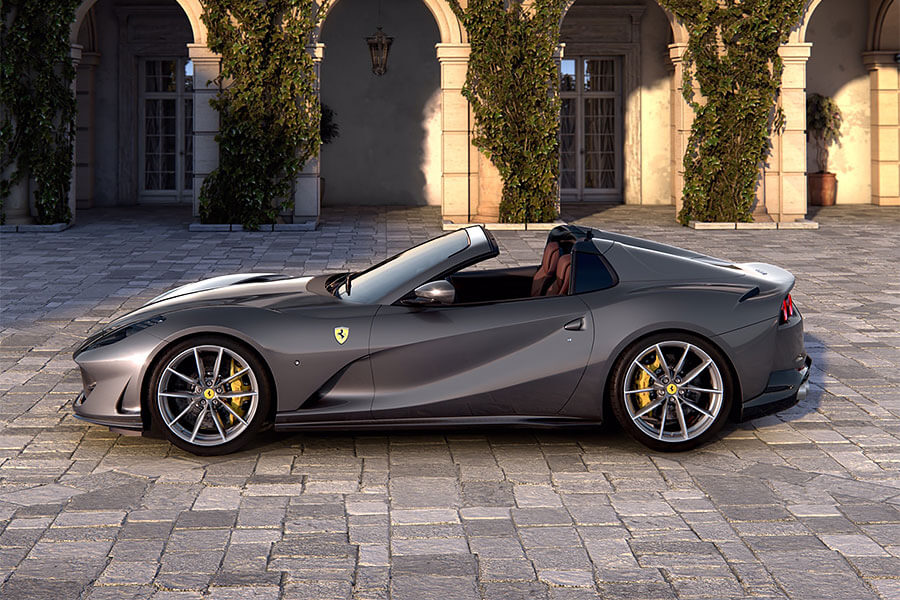 前置V12引擎敞篷跑車,這樣的經典配置已在法拉利的產品型錄消失了整整50年時間。儘管這半個世紀中曾有過包括Ferrari 550 Barchetta Pininfarina(2000)、Ferrari Superamerica(2005)、Ferrari SA Aperta(2010)與F60 America(2014,10部)在內的4款限量車型,卻未曾再有任何輛產版的前置V12引擎敞篷跑車掛上躍馬廠徽。時至今日,以Ferrari 812 Superfast為基礎開發,並承襲於1948年166 MM車型、1969年365 GTS4(Daytona Spider)的純正GT賽車血統的Ferrari 812 GTS重磅回歸!