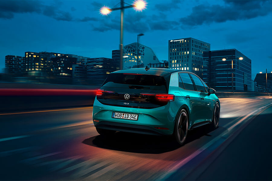 考量到車輛的配重,原廠便將電動馬達安裝在後軸上方,雖然初期只有後驅版本,但是之後也會推出前驅車型(150hp)。那麼是否會有四驅的ID. 3呢?答案雖為否定,但日後即將推出的ID. Vizzion、ID. Buzz、ID. Crozz等使用MEB底盤的道是可以期待。針對這款全新電動掀背,福斯為它提供了45kWh(330km)、58kWh(420km)、77kWh(550km)等3款不同電容量與續航里程的電池選項,且目前只有240hp馬力與極速160km/h一種性能輸出。假如選配有100kW快充系統,ID. 3只需要短短30分鐘即可重新獲得290公里續航里程。