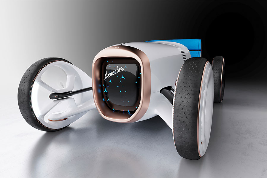 在這座別有意義的設計中心裡,賓士的設計師除了可以按傳統製作出車輛的黏土模型之外,這裡更提供了專門的永續利用材料,以及一些高科技虛擬實境設計工具,讓他們針對品牌的外來盡情揮灑創意。為了讓更多人認識這個地方,賓士於是仿造了當年的Mercedes 35 hp,打造出全新概念車Vision Mercedes Simplex為設計中心進行宣傳。