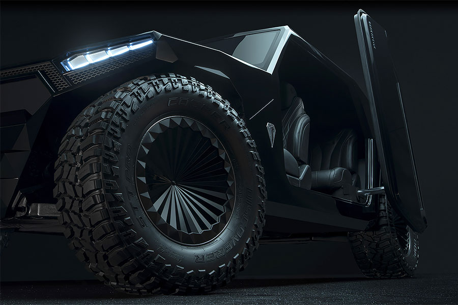 長4.8米、寬2.14米的Ramsmobile RM-X2,隨著輪圈(20、22、24吋)與車胎(38、40吋)尺寸款式不同,車身高度也因此介於1.7-2.0米之間。搭配上40-70公分的底盤離地高、液壓氣動懸吊底盤與30公分懸吊作動行程,就算真的要駕著它去跋山涉水也不成問題。此外在不同駕駛情境下,車載壓縮機另能自行為四個車輪匹配相應胎壓,以提升行車舒適性。