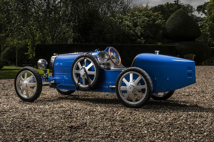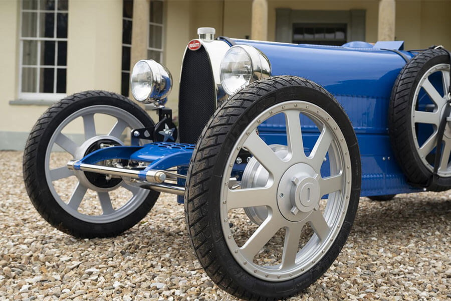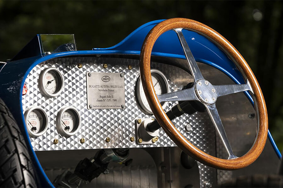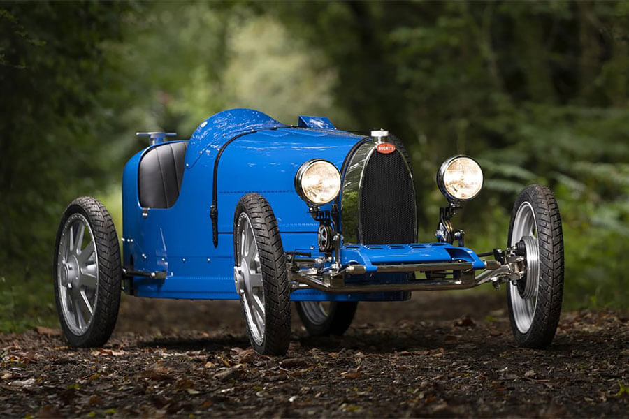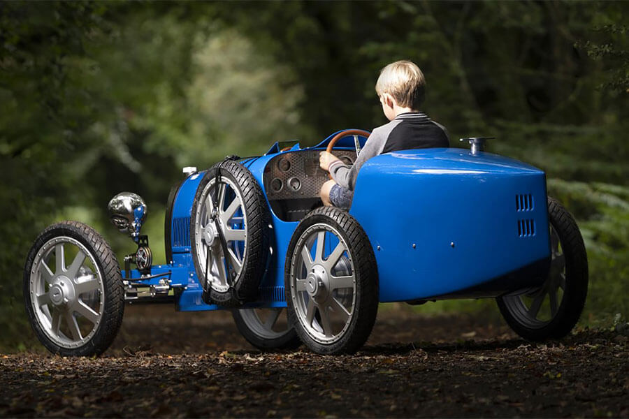 專為兒童構想的Bugatti Baby II,與當年的原車相比除全車裡裡外外皆以3/4比例縮小外,內燃機引擎也改由電動馬達取代。可拆卸式電池共有1.4和2.8kWh兩種容量選擇,滿電狀態最遠續航距離為30公里。與仿間那些標榜原廠授權,速度跟用爬行沒兩樣的兒動電動車相比,Bugatti Baby II雖然無法稱作「性能」,但當它動起來時卻真有「跑」的感覺。因為它所配備的電動馬達可提供分別限速20km/h的child兒童模式,以及45km/h的adult成人模式。而且只要一把和Bugatti Chiron相同的Speed Key鑰匙,動力便能藉由限滑差速器傳導至後輪,Baby II的極速因此也得以個別再提升至80km/h與97km/h。