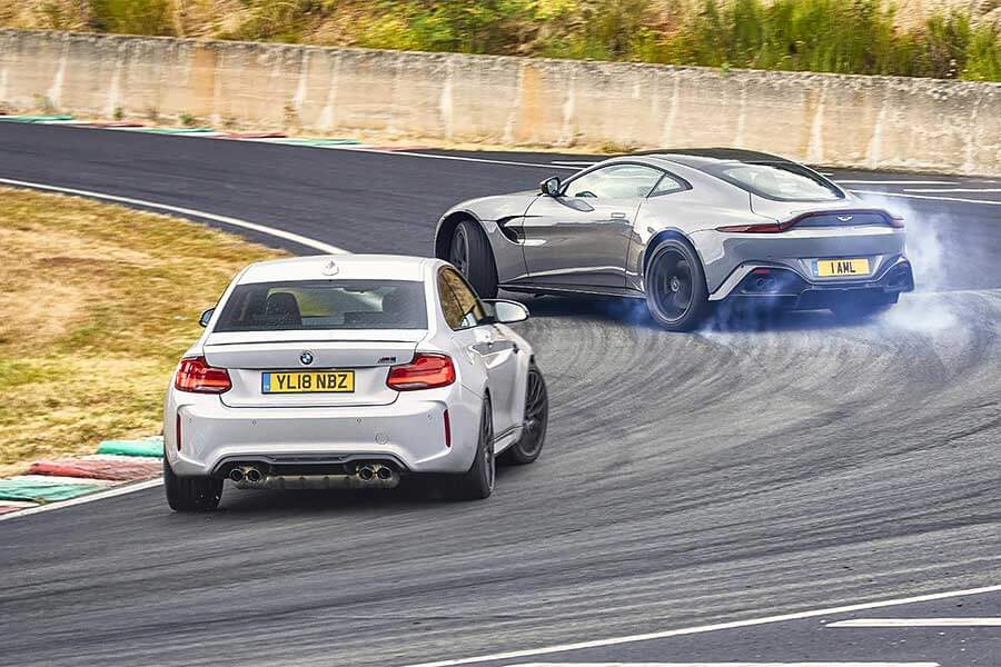 兩部車動力相差99hp,價錢相差70,000英鎊,0-100km/h加速時間相差十分之八秒,極速相差65km/h。形像方面也難以相提並論——Vantage好比度身訂造的西裝,寶馬則是現成的Levis。然而撇開這些細節不談,它們扮演的角色其實大同小異,兩家都是神速後驅轎跑,天生不是製造天倫樂的材料(儘管寶馬在後座一環完勝Aston Martin),無論日行千里或瞬間汽化後輪胎都勝任有餘。幸好TG註冊專利的Speed Week計分制度(其名曰「最擅長逗得我輩傻笑者勝」)把售價、動力和其他關乎數字的比較全部置諸度外,讓各路人馬得以不問出身公平較量。
