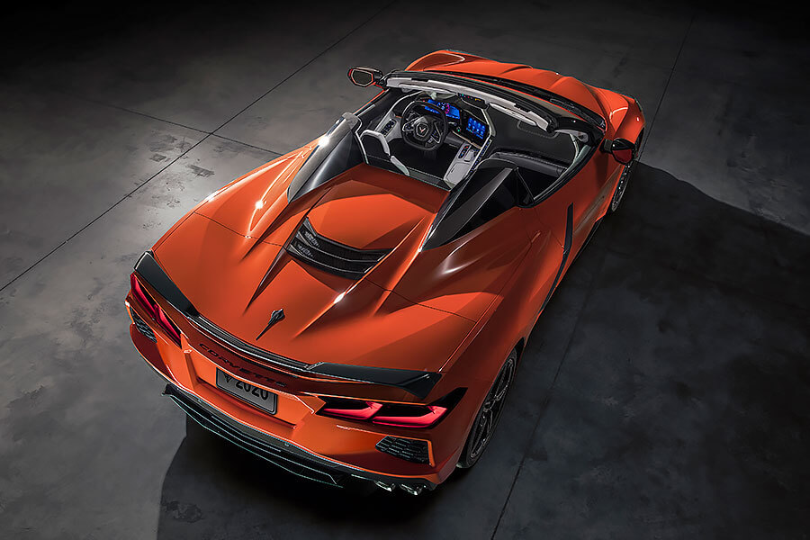 要把一輛轎跑轉變為敞篷車並非易事,而且如果使用的還是硬式車頂的話,那麼更是難上加難。還好雪佛蘭早在第八代Chevrolet Corvette Stingray的開發初期便已決定不只要推出敞篷車,還要首次導入硬頂設計。正因當時計畫得早,工程團隊也更有充裕時間以不犧牲車輛功能、性能與舒適性為目標,設計出一款與過往軟頂車型相比,車艙環境更為安靜,外型更加簡潔俐落,安全性也一併提升的敞篷版美國精神號。