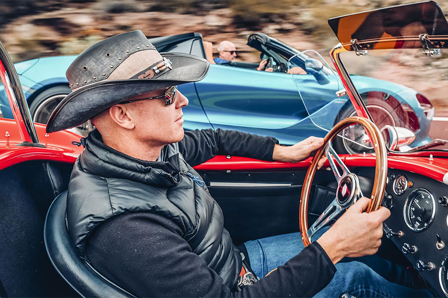 之後一行人便來到因為屹出於鎮上山邊的奇形岩石而得名,一度作為邊陲驛站的Tortilla Flat,正好讓我輩來一場破格演出。儘管時間尚早,鎮上仍然有一路人馬忙於為他們的高蹺Cherokee降低胎壓,以便等一下去野外共聚天倫。當場打開艙蓋互相比較引擎一番,結果麥拉倫憑著活動式儀錶、伸縮車頂和修長線條迷倒在場小孩,Cobra則令他們的長輩舉止如同小孩。你可以清晰看見它的引擎,以及那些為人津津樂道的精美電鍍細節,從鵝頸式安全腰帶、小小門閂、彷彿隨意挑個位置安裝卻令人好想彈指輕敲的Smiths古典儀錶,至到那些袖珍撥動式開關,每一處都是那麼細致入微。一邊小心翼翼與粗壯排氣管保持安全距離,一邊穿過小如貓洞的車門開口曲身跌進那張桶形座椅,然後把指甲大小的車匙插進點火開關信手一扭……最不羈的美夢就此破繭而出。