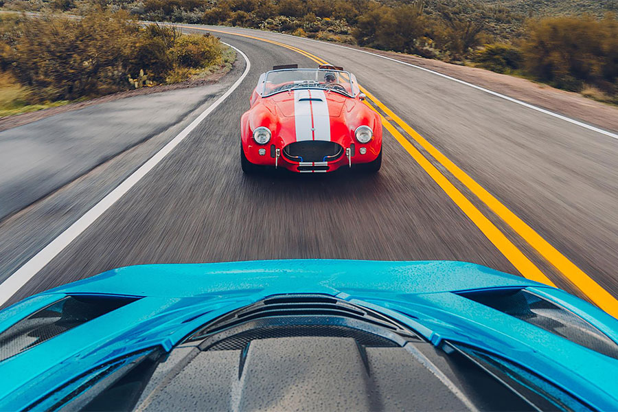 這部Cobra是純粹為了帶來官能刺激而製作嗎?當然不是。表面看來,它也許與今天的麥拉侖唱反調,不過當初設計時,Cobra已經把競賽定為目標。從1965年問世,至到保時捷959踏足江湖為止的二十年間,Cobra一直是世上加速最快的街車,從靜止加速到96km/h不外乎四秒,直搗160km/h嘛……江湖傳聞也許有點甚囂塵上,但九秒左右應該錯不了。動力輸出?當年Cobra已有485hp,同期的法拉利Daytona比之少了不止100hp。據說Carroll Shelby曾經有一個習慣,試車時喜歡用膠帶在儀錶板貼上一張百元美鈔,然後打賭有本事伸手抓住鈔票的話,那100美元就歸對方所有,Cobra的加速威力可想而知。可是看看這身造型啊,若說世上有甚麼汽車能讓你一跳進去就可以瀟瀟灑灑揚長而去,答案肯定非它莫屬。