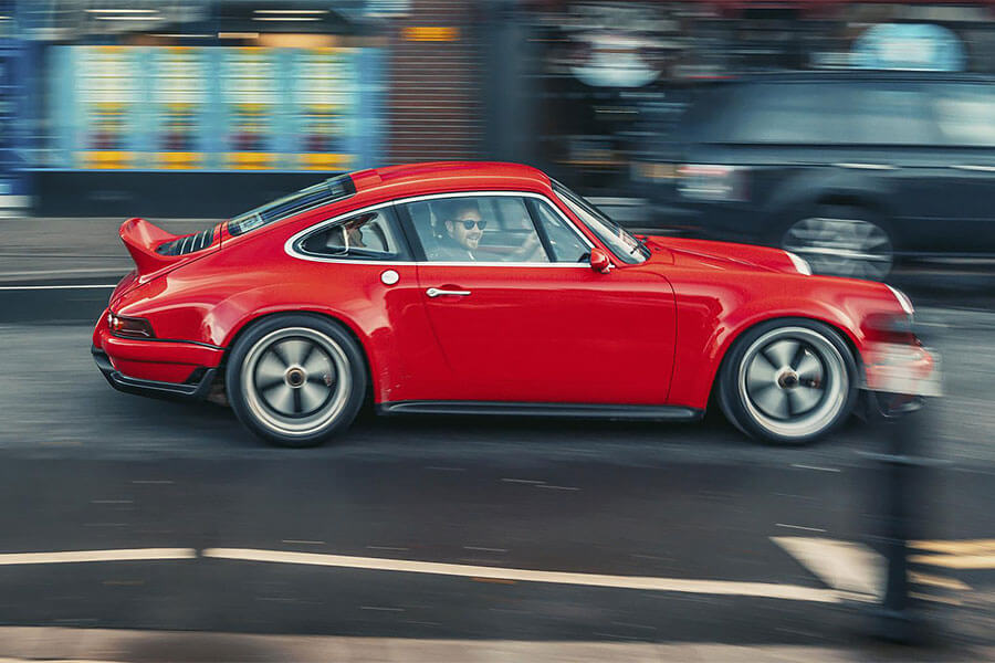 進入旺塔奇中部時,我拜託他用20km/h在市中心迴旋處兜幾圈,原因卻不是但求幸災樂禍,而是覺得此乃我們見識它在戶外有何風範的良機。在照明一流的攝影棚端詳一輛車,與親眼看見它停泊在地鐵站外跟沒精打彩的Mondeo為鄰,畢竟是兩回事嘛。雖說這裏和Singer的加州老家相隔十萬八千里,但誰會在意呢?反正這輛車本身就勝似陽光,硬是值得欣賞,無論從高低前後角度看過去都非常上鏡,簡直無懈可擊。蹲伏姿勢和車身比例感豈止完美無瑕,還散發出一股難以言喻的氣質,Rob Dickinson的法術果然名不虛傳。要是知道他怎樣設爐煉丹,恐怕所有人都會依樣畫葫蘆呢。