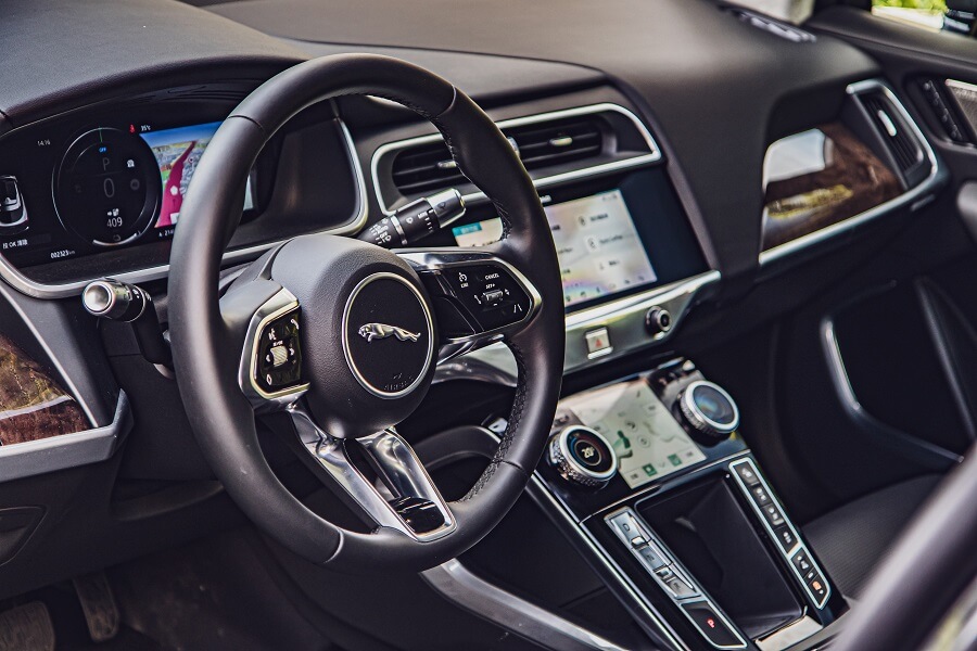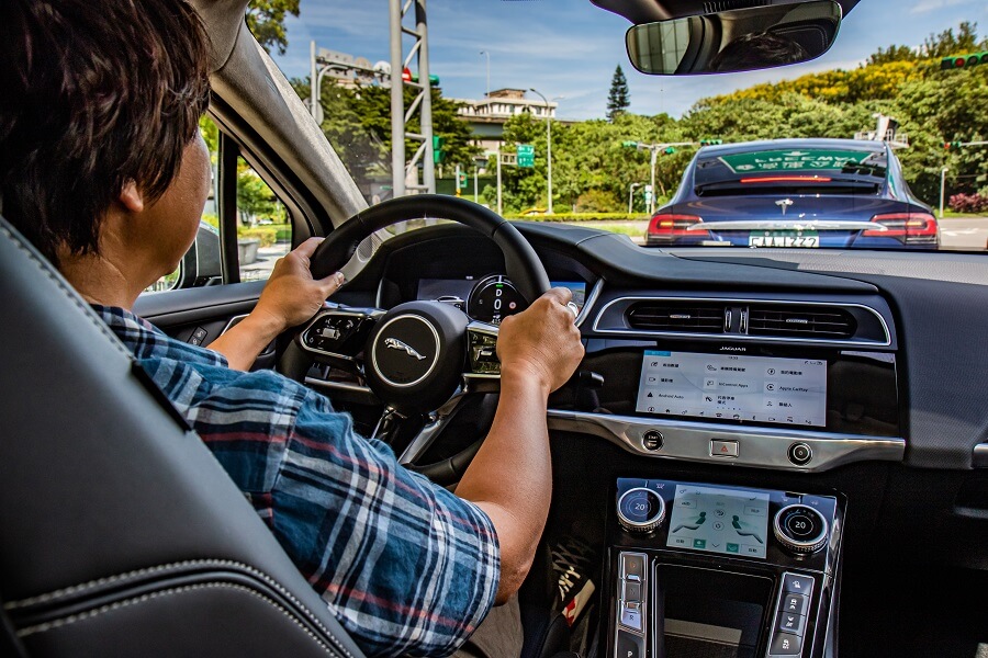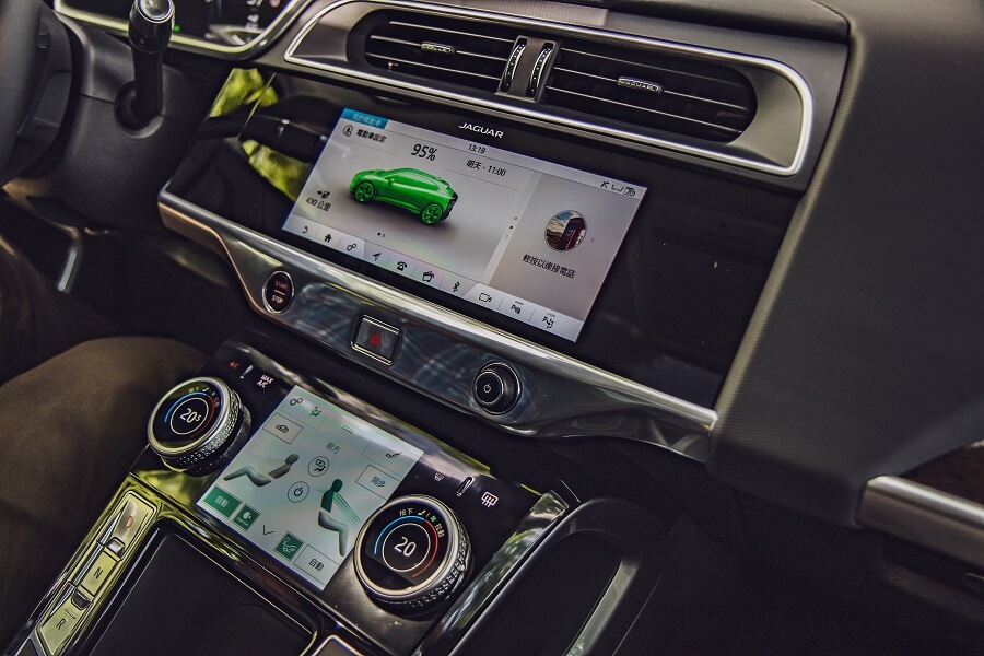 見到它的第一眼,感覺身材比預期要小巧些,且讓我印象最深刻的就是C柱之後的車尾線條構成,就像一部跑車般相當流暢、華麗,或許這樣的線條會讓人對後座頭部空間抱持著問號,不過門一開就有答案,平整化地板提供充裕的膝部與頭部空間,許多小地方都非常紮實且恰到好處,如12.3吋的虛擬儀錶、觸控影音資訊螢幕,還有觸控的空調面板及旋鈕,一些開關、皮革與內飾板做工講究且細膩,使用起來也相當緊緻、精準,十足英國豪車作風,讓我變的心如止水、與世無爭,整個開車手法變的佛系了起來……。當然,近年消費者相當重視的主動安全與半自動駕駛輔助也都可以在車上見到,就整體而言,跟近期任性的將儀錶拿掉,在中控台只保留一個大螢幕的Model 3比起來,或許I-Pace顯得傳統、守舊,不過總比Tesla給人的塑膠感要好上許多。