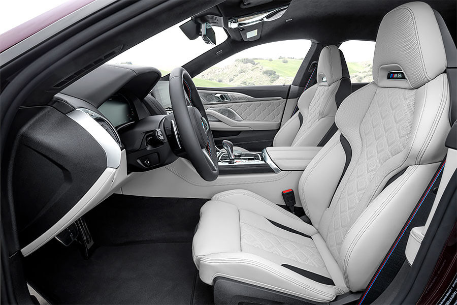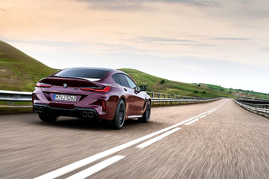 引擎蓋下方,負責運氣發勁的依舊是那具大家所熟識的4.4升V8雙渦流雙渦輪汽油引擎,並且匹配M Steptronic 8速手自排變速箱。在標準M8 Gran Coupe車型上,這具引擎僅含蓄地僅展現了八成功力,提供600匹馬力與76.5公斤米扭力,零百加速3.3秒。不過當M8銘牌底下加上了黑色Competition字樣後,這具M TwinPower Turbo引擎便毫無保留地將625hp馬力與76.5kgm扭力使盡,亦使得其靜止起步加速縮短至3.2秒。如同BMW M5、X5M、X6M等先行車款,M8 Gran Coupe兩車型極速皆為250km/h,但選配M Driver’s Package套件後即可甩開束縛衝向305km/h大關。