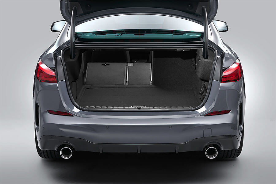 和先前雙門版的BMW 2 Coupe相比,車身尺碼長4,520/寬1,800/高1,420/軸距2,670mm的2 Series Gran Coupe車內空間明顯提升許多,特別是增加33mm的膝部空間,以及選配全景玻璃天窗後額外獲得的12mm頭部空間都能讓後座乘客感覺更加自在。除了乘坐空間得到改善外,車尾現在也得到了更加充裕的430公升(+40公升)行李廂容積,而且後排椅背也可以依照實際的使用需求進行40:20:40傾倒,使得整體的機能性比起過去更具有彈性。