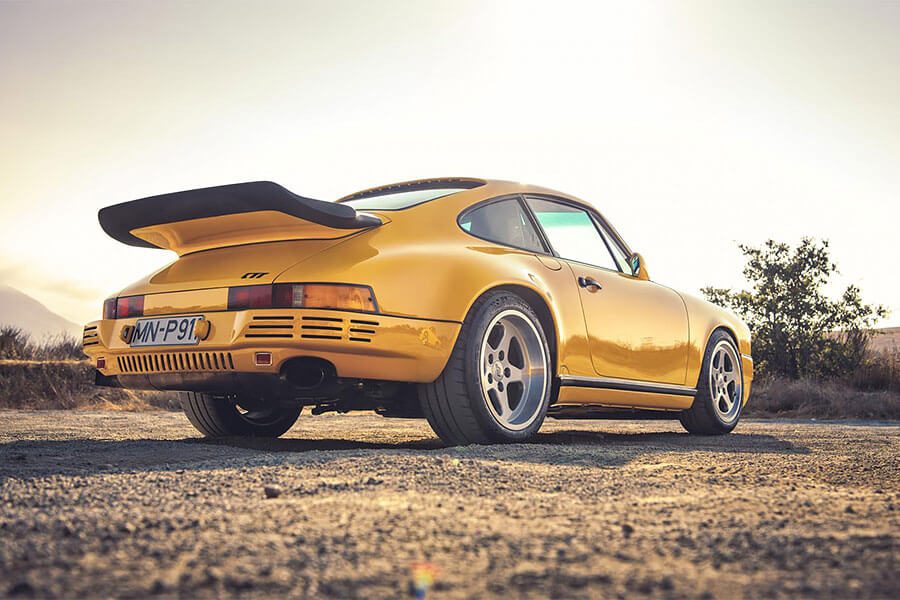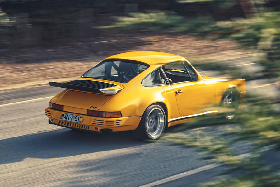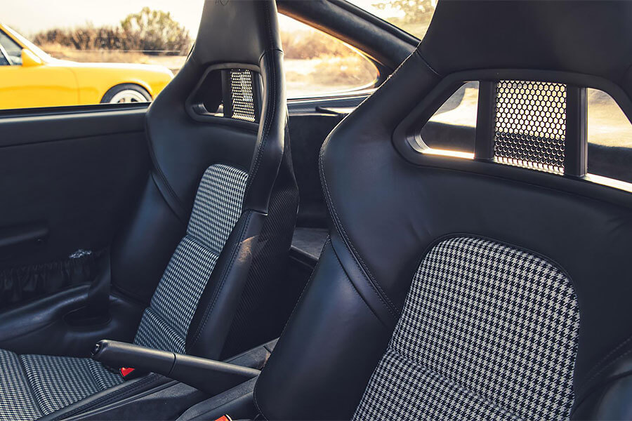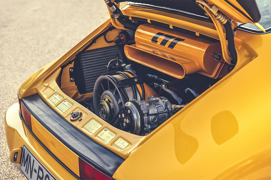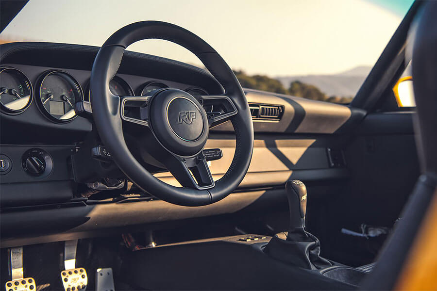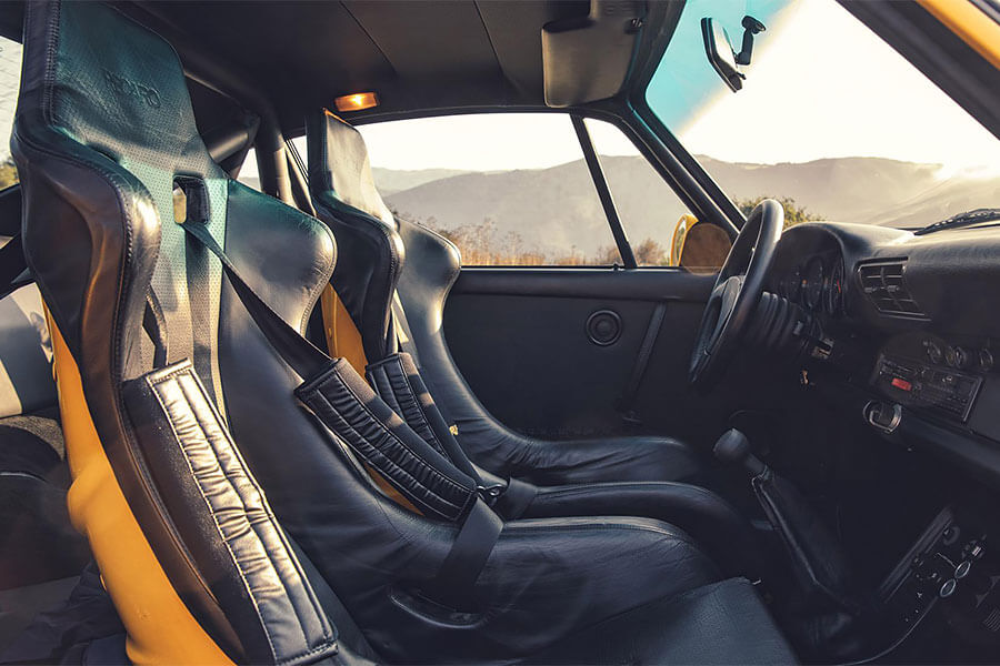 這部CTR乍看也許好像964強化版,其實兩者相去極遠。仔細觀察的話,便會發覺這個Yellowbird三十周年紀念版身上幾乎沒有保時捷部件,來自Wessiach的現成部件僅限於前後擋風窗、車門玻璃和窗框。