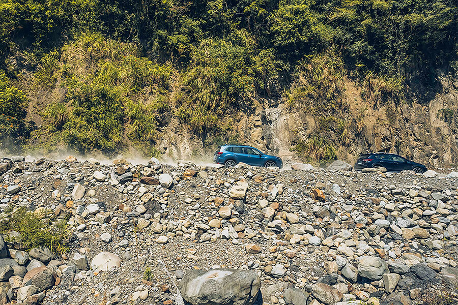 聽聞新中橫要接往南橫路上,必須要踏上傳說中的神祕小徑-山美產業道路(嘉129線),常見的鋪裝道路漸漸進而由滿佈碎石的產業道路所取代,按下X Mode鍵能明確感受到越野抓地分配有顯著的提升,胯下四顆輪子打滑幅度降至冰點的意圖相對明確,眼前的高低路段雖看似險惡,卻能一一被220mm的底盤高度輕易化解,真的小生怕怕倒也無畏,這次GT Edition還特此奉上AVM360環景永保安康,XV GT堪稱當代上山下海的微型越野跨界休旅尖兵可一點都不假。