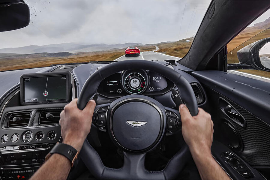 車手起初會覺得信息豐富得好像鋪天蓋地的山洪,感覺恍如從寧靜花園突然墮進一個人聲鼎沸的派對,可是很快又會發覺信息原來有不同頻道區分,每一條頻道都傳達著微言大義。車手只要認清一個事實,謹記這部車有789hp湧往後輪,大部分時候當能穩操勝券。慢速彎?油門只不過開大了那麼一毫米,已經夠我第一時間原地調頭露出一臉迷茫的表情。高速彎?812簡直令我冷汗直流,不得不全力聚精會神化解轉向過多。打算關上牽引控制系統用812 Superfast認真挑戰速度的朋友,最好吃光早上那碗維多麥,乾掉幾杯咖啡,再順便接受一趟腦白質局部切除手術吧。在一般公路上,你我根本沒不可能徹底發揮812的威力。但話說回來,我們在公路上又何嘗發揮到DBS的十成功力呢?所以就點與點之間的代步用途而言,這兩部跑車其實相當類似。那麼放諸賽道呢?法拉利有本事撇下DBS任其自生自滅,再把它燒成灰塵歸塵土歸土。