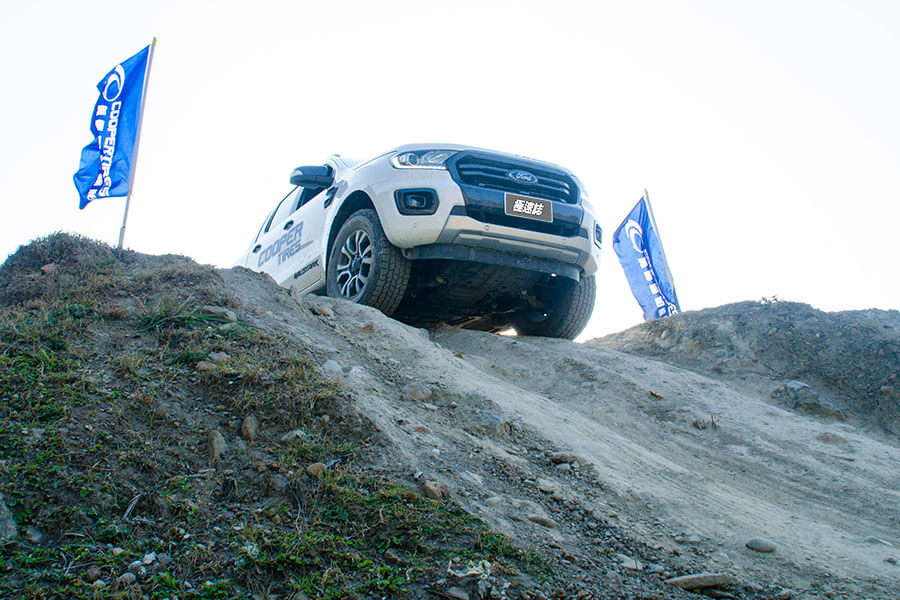 最後一趟我們乘著使用Discoverer AT3 4S的Ranger再戰越野關卡,憑藉著這款輪胎深型溝槽設計,繞場一圈下來Ranger面對所有陡坡的爬升,以及高低落差較大的路面皆沒有遇到什麼太大的阻礙。就算是角度較大的坡面,有時也只需要稍為補點油門,甚至鬆開煞車讓陡坡緩降系統自己做動即可順利過關。
