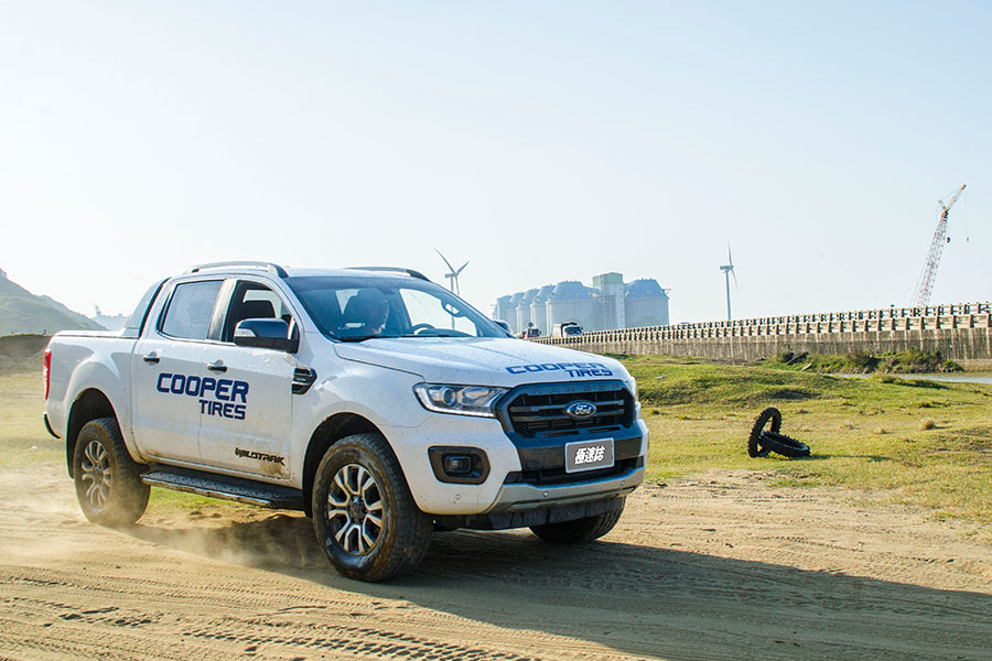 收工前我們還有一款以戶外為主的Discoverer AT3 4S輪胎,以及Ford Ranger在等著我們,不知道能否單純體驗公路感受就好,越野什麼的我們真的累了也怕了。不知道主辦方是不是又再次看穿了我們的想法,二話不說就請我們先用原廠胎Ranger去跑一趟西濱公路,殊不知這部皮卡真是顛到一個無以復加,像極了在一旁的台灣海峽逆浪而行的快艇。尤其來到彎道,車輛慣性和輪胎低抓地相互加乘,轉向不足的推頭感愈發清晰,只能彎中再減速以求穩定。再換上另一部Ranger,才起步不到十秒我們已決定獻上雙膝,別說顛簸和彈跳了,此時就連重達2.2噸的Ranger也像化作一葉輕舟般溫柔了起來。就算Discoverer AT3 4S的胎塊之大,車子開起來還是很穩定,即便在轉彎時還是能感覺得到一點慣性存在,但較高的路面附著力自然而然地將其抵銷。