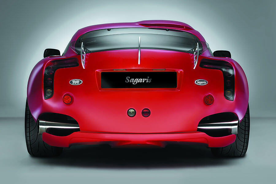 Sagaris真瘋狂,不是嗎?除了車身兩旁大刀闊斧的切口、透明尾翼和缺乏駕駛輔助系統或安全裝備,打橫伸出的排氣管亦可圈可點。為甚麼橫置?純粹出於TVR覺得這個安排很有趣。