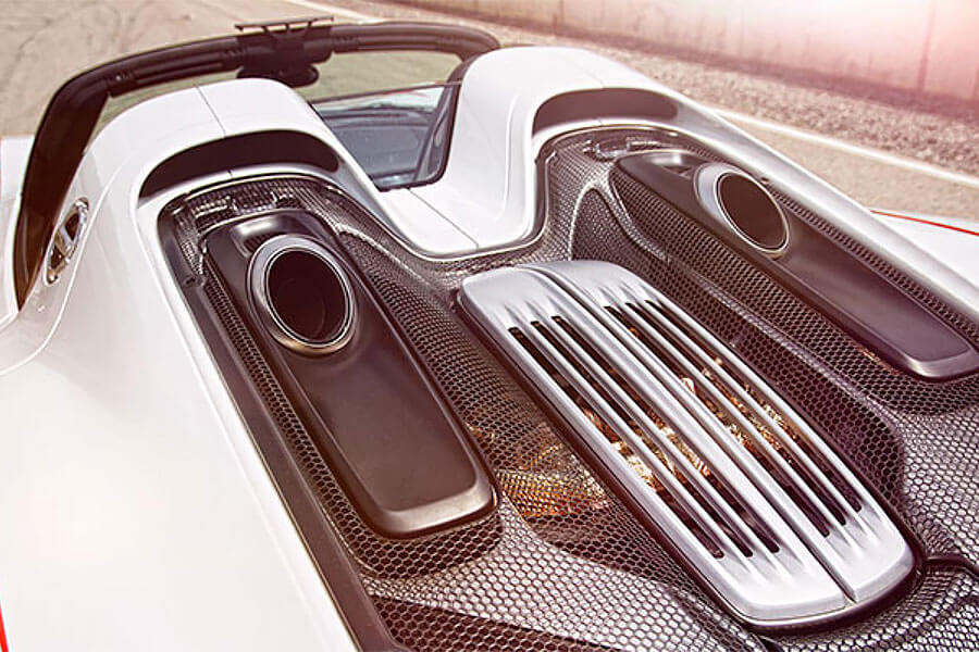 混能918的朝天排氣管,並非保時捷純粹嘩眾取寵的噱頭,而是工程師為了盡量令熾熱廢氣遠離車上對溫度敏感的電池,才決定把排氣管佈置成朝天鼻。