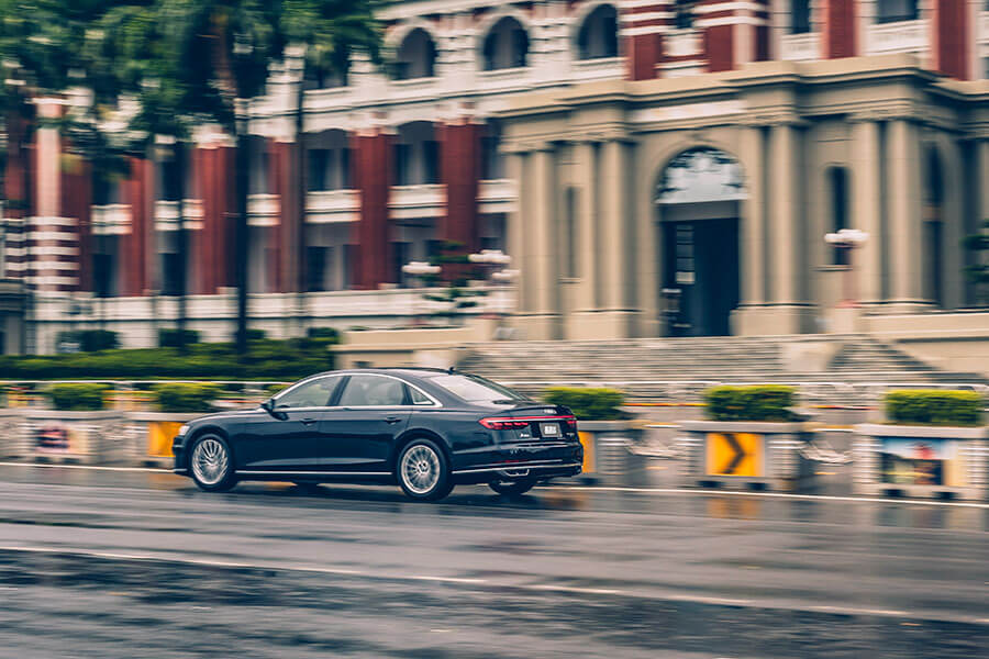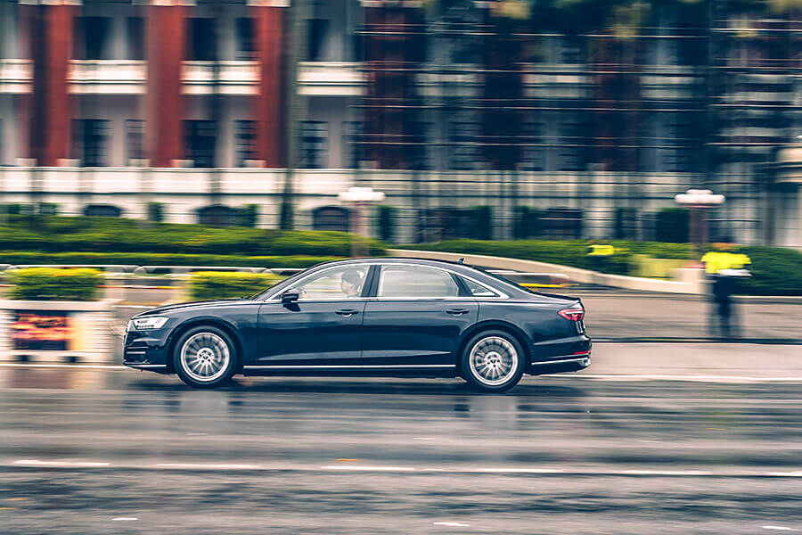 無論是A8亦是A8L皆搭載了quattro四輪驅動系統,A8L則除了傳統的3.2升六缸汽油渦輪引擎外,這次一同併入了48V輕型複合動力系統傍身,除了減少能源耗損外,還能額外增加起駛動力使加速更為平順且迅速,兩套的加乘功力能激發出340匹馬力及51公斤米扭力,我知道這數字看來令人相當失望吧,但透過調教過的Tiptronic八速手自排變速箱,縱使像A8L這樣輕易突破兩噸的龐然大物,零至百公里依舊能保有5.7秒達標的實力,最高極速則限制在每小時250公里為止;別開玩笑了,一輛五米三重達2公噸的豪華房車是能多快,但就地演練它確實有大殺四方的潛力,透過以車手為導向的駕駛艙帶來的駕馭樂趣,這快感還遠遠超過寶馬7系有餘,甚至我輩打從心底認定奧迪根本就無心打造一輛總裁用車,只是為情勢所迫而逼出來的閒暇之餘產物。