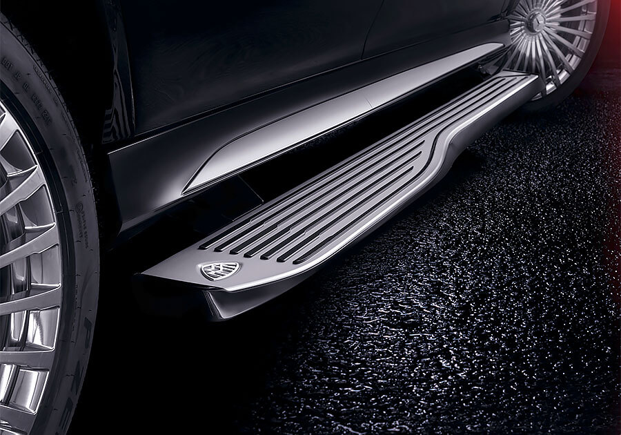 首先,從車頭直柵式水箱罩開始,連同下氣壩、下護板、側裙、窗框、B柱和車頂行李架全部都由銀色鍍鉻飾件妝點,陽光照射下的耀眼光芒就連墨鏡也無法擋。而且除了單一車色之外,Maybach也提供了7種two-tone雙色調組合選項,無論哪一種都盡顯這款GLS的雍容華貴。不過車外最能吸引潛在買家的關鍵則常在車底,當乘客從外部拉動車門把手時,氣壓懸吊不但會立即自行降低底盤高度25mm,裙腳下方還會伸出一塊兩公尺長的鋁合金踏板,以更舒適、輕鬆且尊榮無上的方式歡迎乘客上車。如何,現在還有人在意外型嗎?