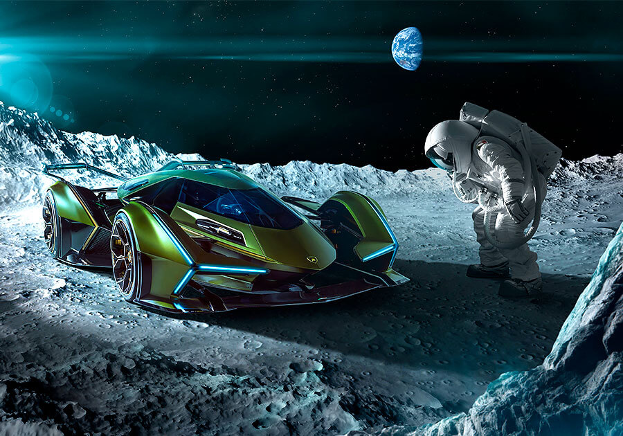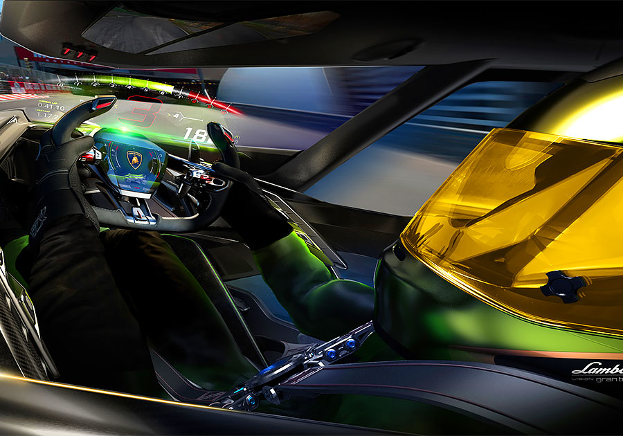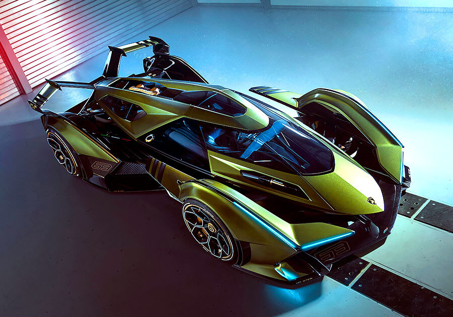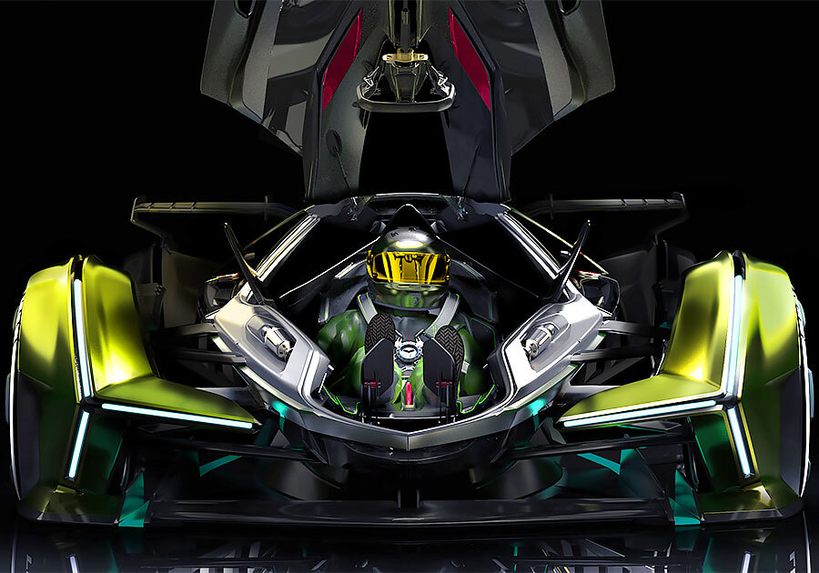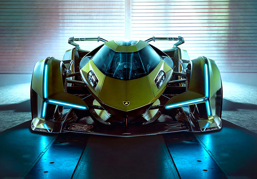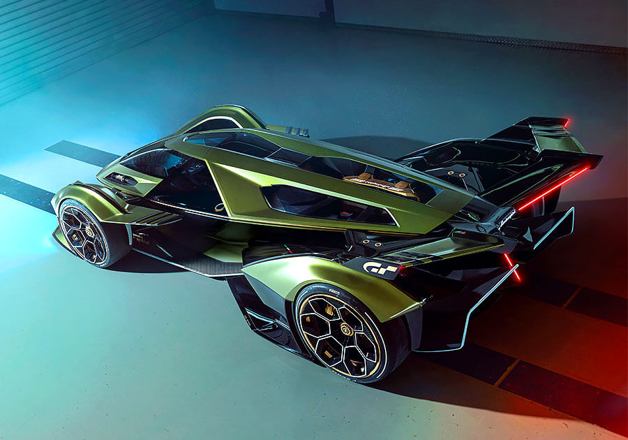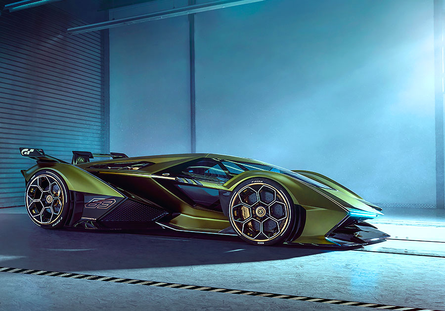 以Lamborghini Sián做為基礎進行設計的Lamborghini Lambo V12 Vision Gran Turismo,全車造型雖然既前衛又瘋狂,但設計團隊還是不忘本地為它保留了Sant’Agata Bologness的核心設計風格,其中包括出自1968年Lamborghini Marzal的六角型車窗、藍寶堅尼正字自標記的Y字型頭尾燈,當然還有設計大師Marcello Gandini為Lamborghini Aventador所刻劃的線條輪廓。而四個看似不連貫的輪拱造型、巨型輪圈、飄浮式尾翼和受戰鬥機啟發的駕駛艙則將全車戰鬥指數點到最滿,甚至還因此為其削減了891kg重量,創造出神話般的1:1馬力重量比。