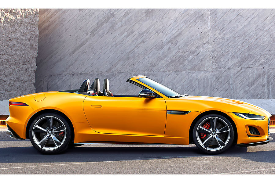 較為前傾且拉長的車頭,加上稍稍放大的水箱罩和新式LED頭燈造型,小改款F-Type全身所散發出的殺氣更勝以往。改動較少的側身輪廓,為與改款前做出區隔現在也換上全新岀風口設計,而短促尾部上的新式尾燈造型則是參考自原廠首部電動車Jaguar I-Pace。至於敞篷車型部分,捷豹目前僅提供了一張照片吊盡眾人胃口,不過相比之下有車頂的F-Type還是性感許多。