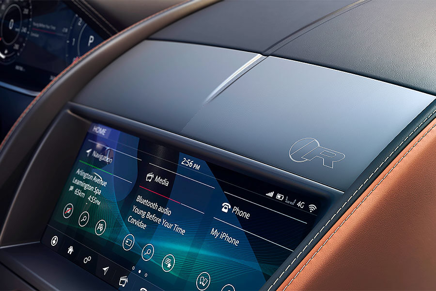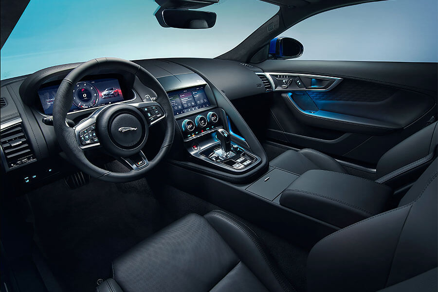 相較於改變較大的外型,F-Type雙座駕艙彷彿將時空停滯在2013年不再往前,主要陳設與空間配置仍舊維持小改款前的設計。不過在其他細節處倒下了不少功夫,例如透過Windsor Leather皮革與銀色鍍鉻飾版的使用替內裝豪華的氛圍再昇華,同時兩張運動座椅也具備有12向電動調整功能。最重要的是,駕駛座前方也換上了轉速錶置於正中央的全新12.3吋HD TFT全數位儀錶。另外,針對數位時代的用車需求,車現如今也配備了Smartphone Pack智慧型手機套件,相容於AppleCarplay,或依國家只要使用習慣支援Android Auto及Baidu Carlife手機車載系統。