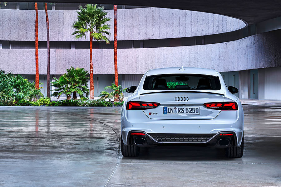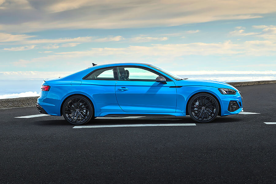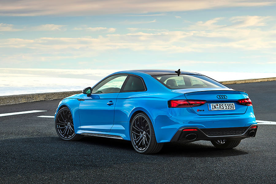採取與RS 6 Avant和RS 7 Sportback相同的設計風格,RS 5 Coupe和RS 5 Sportback包括前氣壩、側裙、後下分流器皆變得更具侵略性,以落落大方的方式將Audi RS所蘊含的強力性能一次表露。同時奧迪也賦予了這兩款高性能轎跑車和跑房車兩款響亮的Turbo Blue和Tango Red全新車色,並於足下標配19吋(可選20吋)黑色高光澤或消光銅色輪圈,而RS 5 Coupe則獨家標配有可減少4kg車重的碳纖維車頂。此外,另可選配黑色高光澤、霧面鋁合金或碳纖維外觀套件增添個人風格,或選配碳陶瓷煞車碟盤提升煞車制動性能。