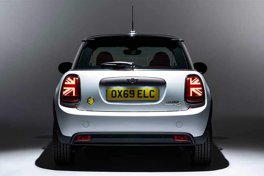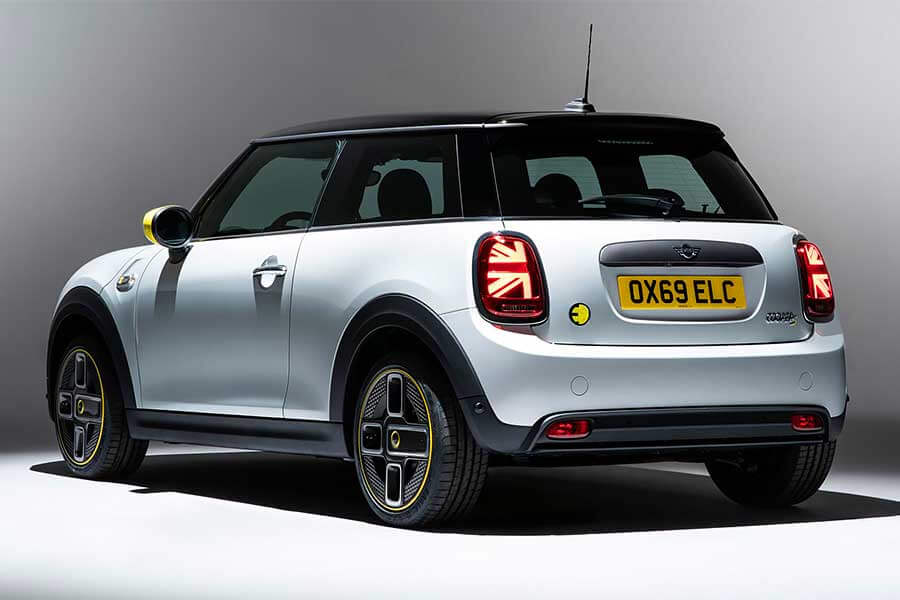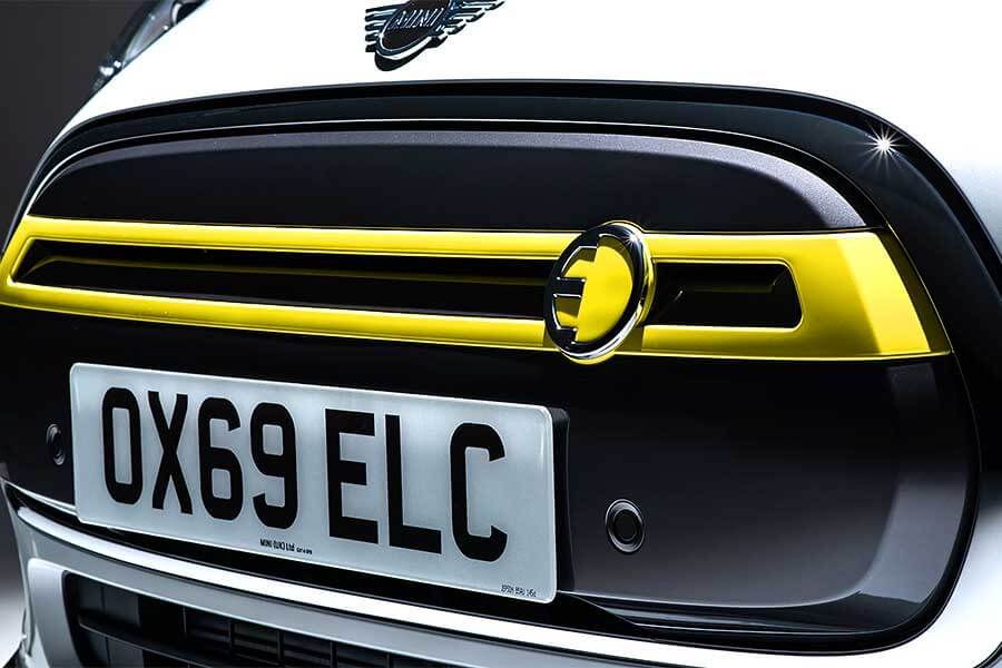 想標榜自我的話,買家可以另行選配圖中直接抄襲概念版的17吋非對稱Corona輪圈(有人覺得像三腳電插座嗎)。改動幅度較小的地方包括了一個如同用口罩遮面的新型車頭護罩,後者比一般Mini水箱罩凸出17mm,並有Energetic Yellow條紋為記,自問視網膜過敏的買家亦可以把條紋換成車身同色。頭尾保桿採用了特別平滑的低風阻設計(不設分流器,不能選配Sport套件),藉此稍為延長續航距離,LED頭尾燈是標準設備。用尺量一量,會發覺Mini Electric的下盤相對標準型Mini升高了15mm(遷就電池之故),儘管較粗的輪拱稍有遮醜之效。