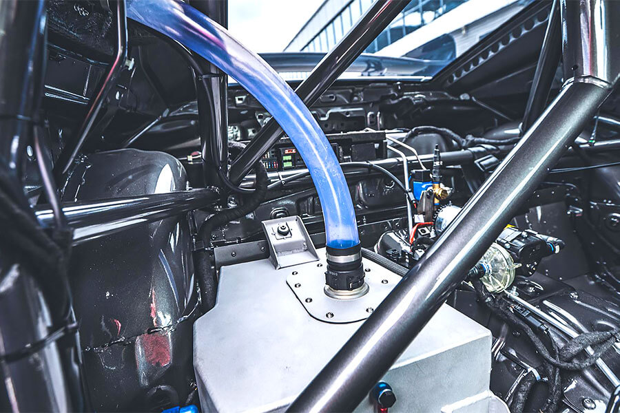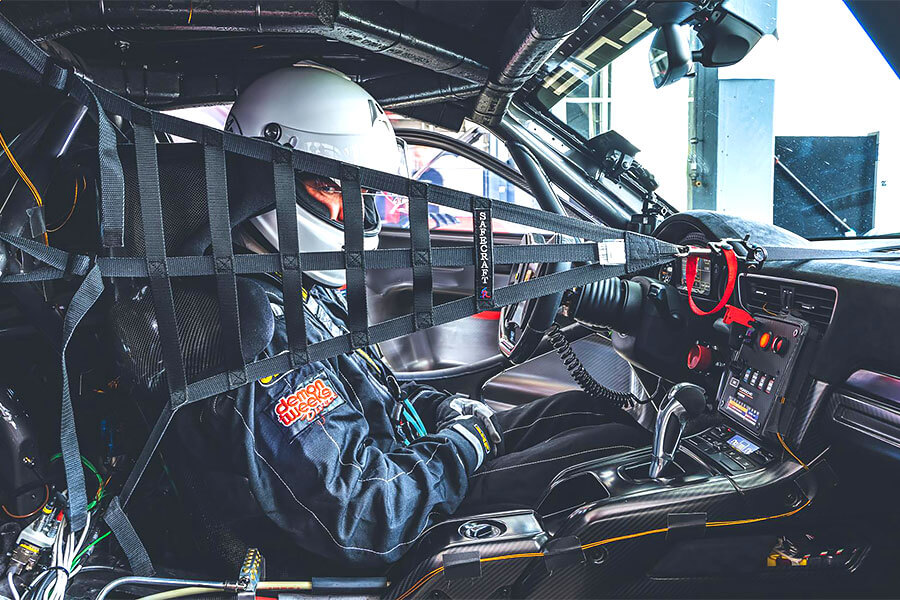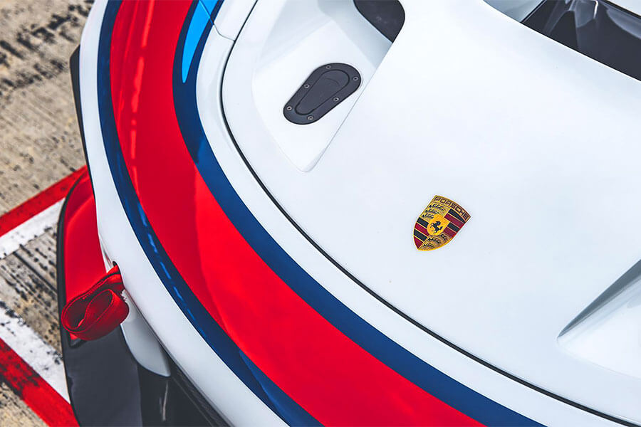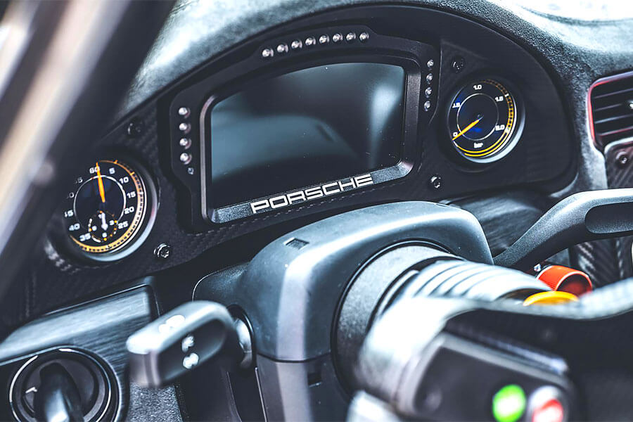瞪大眼看看它吧,身上既有鼻孔爭一口氣,又有緊緊罩著散熱器的諸般進氣槽和散熱口,低風阻輪圈何其養眼,輪拱頂部一排漂亮切口在傳奇Martini戰紋推波助瀾下營造出漫畫般的靜態速度感。再靠近一點細看,尾翼果然碩大無比,911原有的煞車燈被935的長長車尾完全吞進肚內。除了那雙貌似鈦合金Gatling機關槍的排氣管,外圍所見一切皆以碳纖維或Kelvar製造。車廂裏面設有FIA全規格翻滾保護架和賽車儀錶板,按鈕多不勝數。車手可以透過分割式迴路調校前後兩邊的煞車力道比重,更改牽引控制系統的設定(或者索性關閉系統),解除ESP功能,或者打開車頂逃生艙門前意外啟動內置式滅火器。那些防止上半身甩來甩去的欄網令人覺得自己好像不幸落網的鮪魚,網眼之大跟我的信心一樣空空如也。總括而言,這是相當認真的利器。機件方面同樣醒腦,全部都是經過實證的貨色,3.8公升雙渦輪增壓平臥對向六汽缸來自GT2,動力經由七前速PDK雙離合方向盤換檔變速箱和硬式車軸送往後輪。至於體重,1,380kg其實跟GT2 RS差不多。前輪煞車用上380mm鋼碟配六活塞鋁合金卡鉗,大後方是355mm搭四活塞。為了獲得最佳視覺效果,最好加上一套熱辣辣的光頭賽胎,之後就可以退到遠處一窺全貌。所有人亦應該跟你一起退開,退到防彈牆後面更加好。