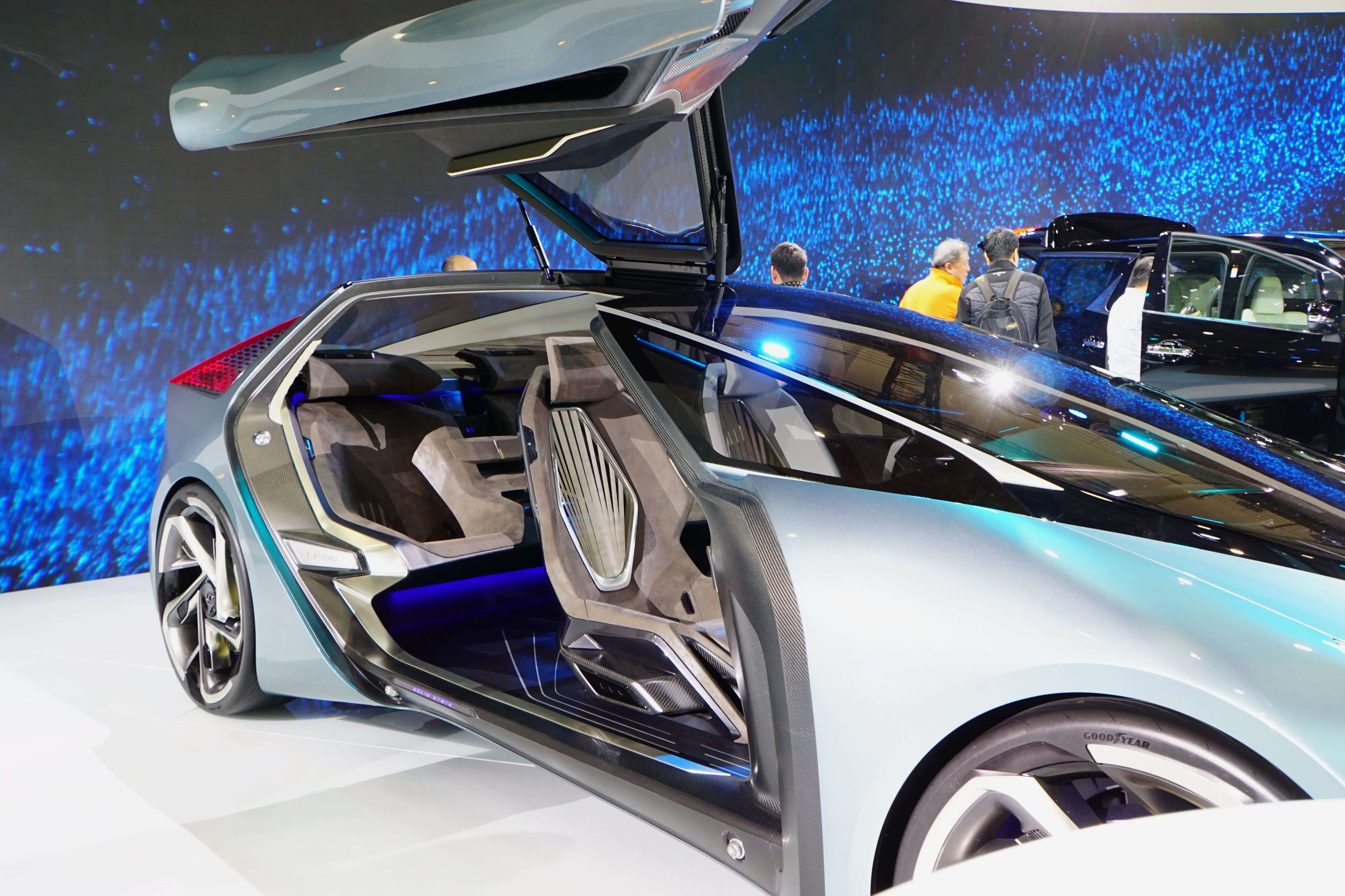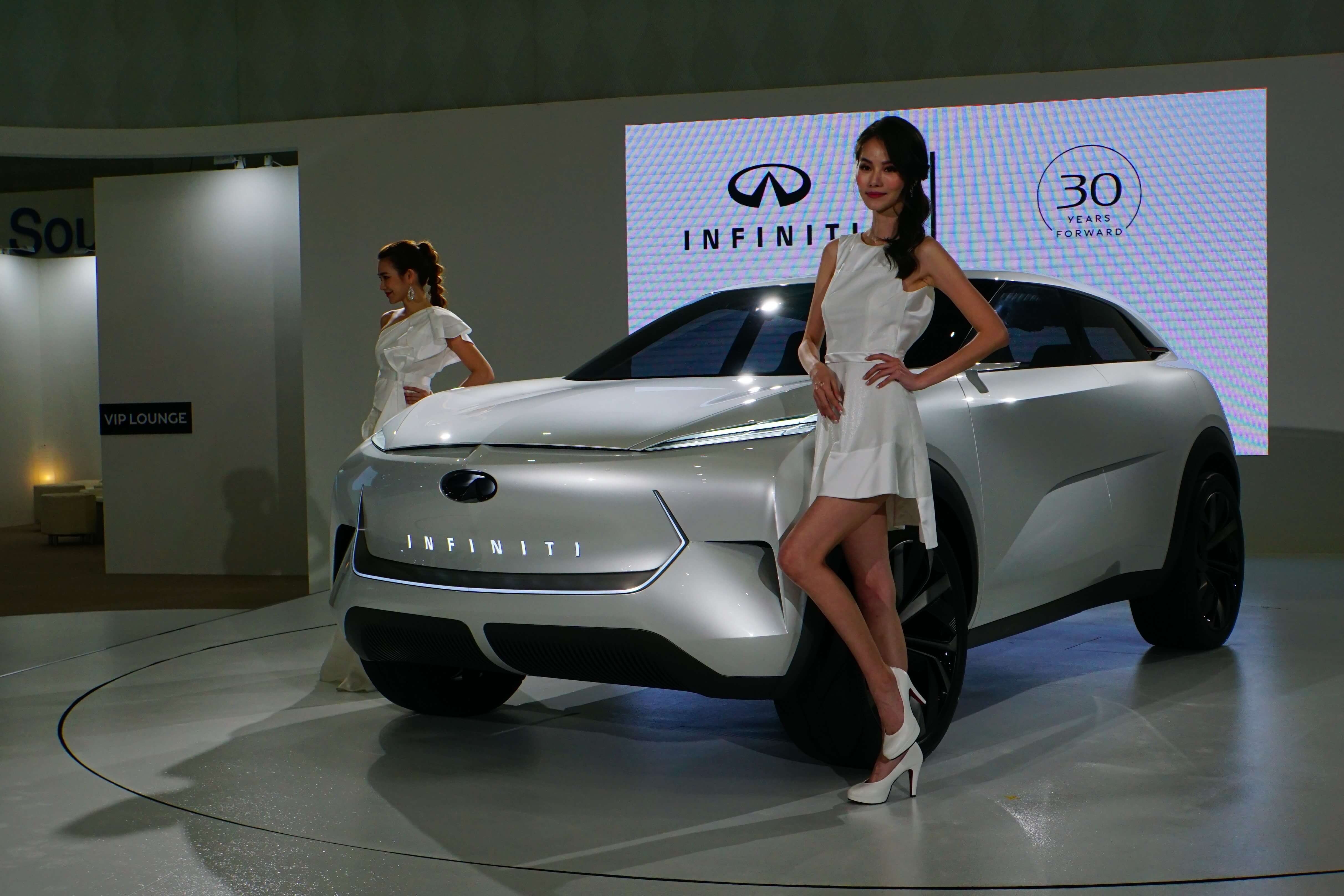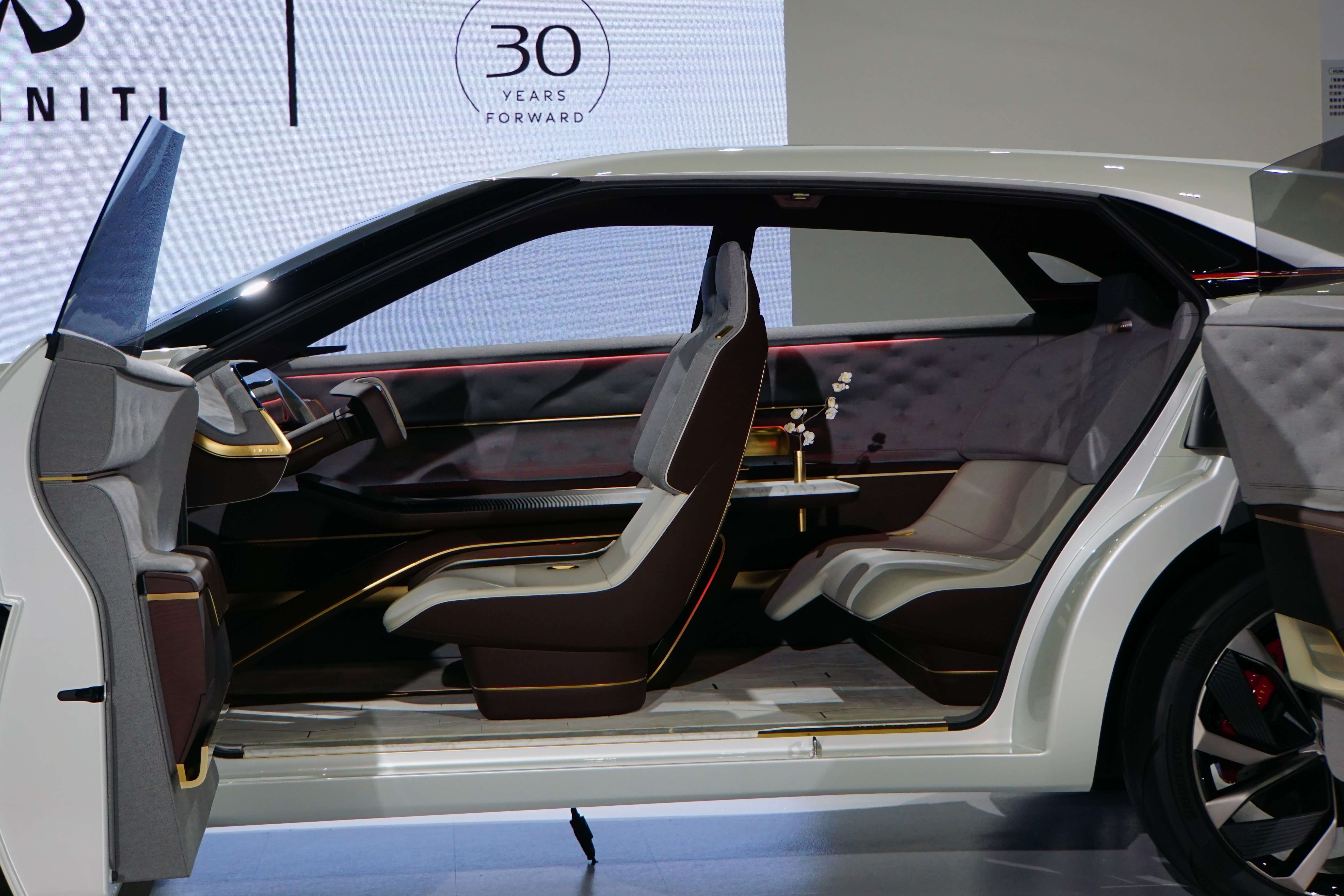 過條走道,緊接著就會來到日產豪華自品牌Infiniti的展區。在一字排開的品牌現行車款後方,隱約有一個優雅的白色身影不斷吸引眾人的注意,讓人忍不住朝它走去好好瞧個仔細。看見舞台前方黑色的英文詞彙Inspiration,頓時整個人似乎也受到了啟發,想起原來眼前的這部車也是同樣來自美國,不過是從底特律前來的概念車Infiniti QX Inspiration。不過要提醒大家在欣賞這台車時,千萬別只看它肌肉紋理豐富又盡顯跑格的外型而已。若有機會可得好好靠近它,不管是透過車窗,或者幸運碰到其對開式車門開啟,那有如精品科技酒吧般的豪華內裝才是QX Inspiration的真正看點(趕快筆記下來現場炫耀給同行友人聽)。