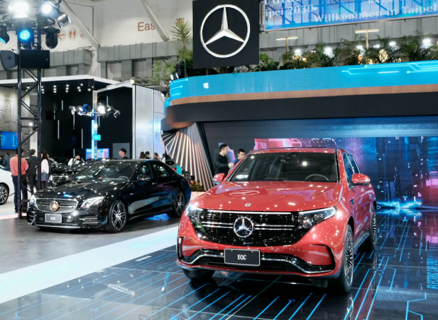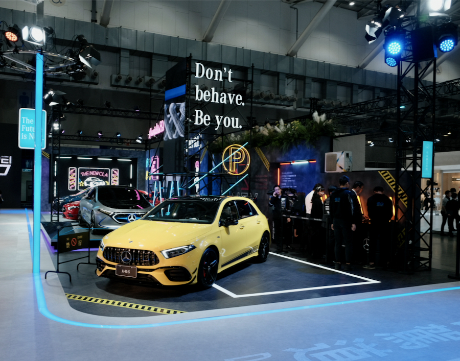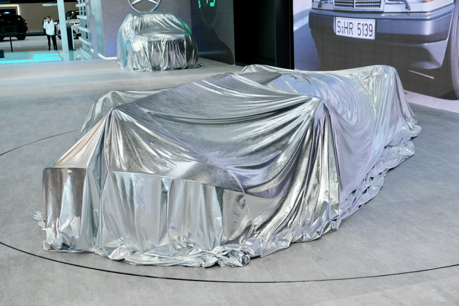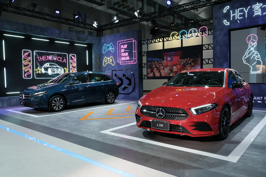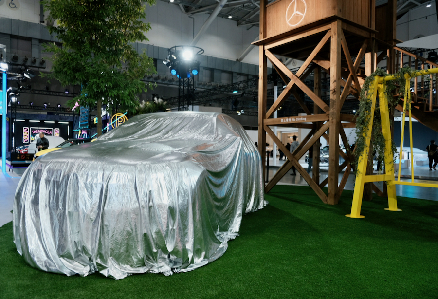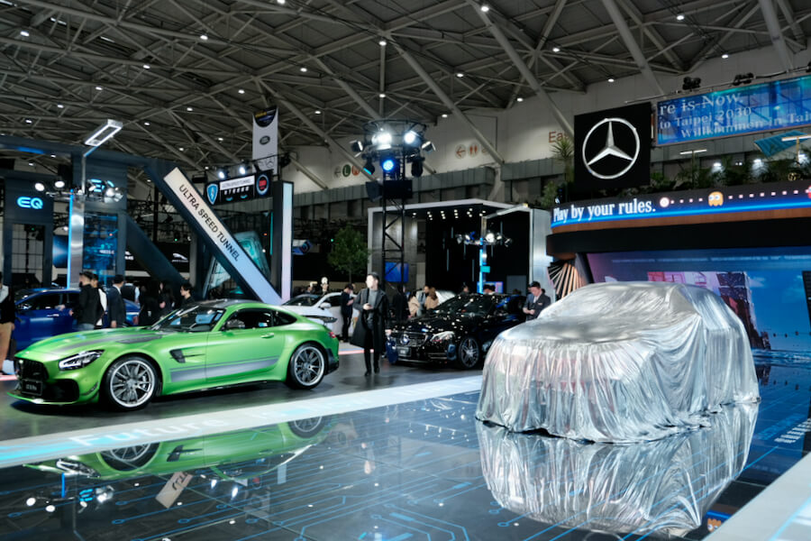 位於四樓的賓士,官方除了展示眾多旗下熱門車款外,未到記者會時便能輕易發覺,會場上好幾輛都蓋上了閃亮動人的銀色飾布,雖然小編早先知道會出現的車款有那些,但確實增添了幾分神秘感,展場也打造出未來都會的前衛設計相當靚眼,而今天大家齊聚在這,為了就是一睹會場後方的重量級人物~