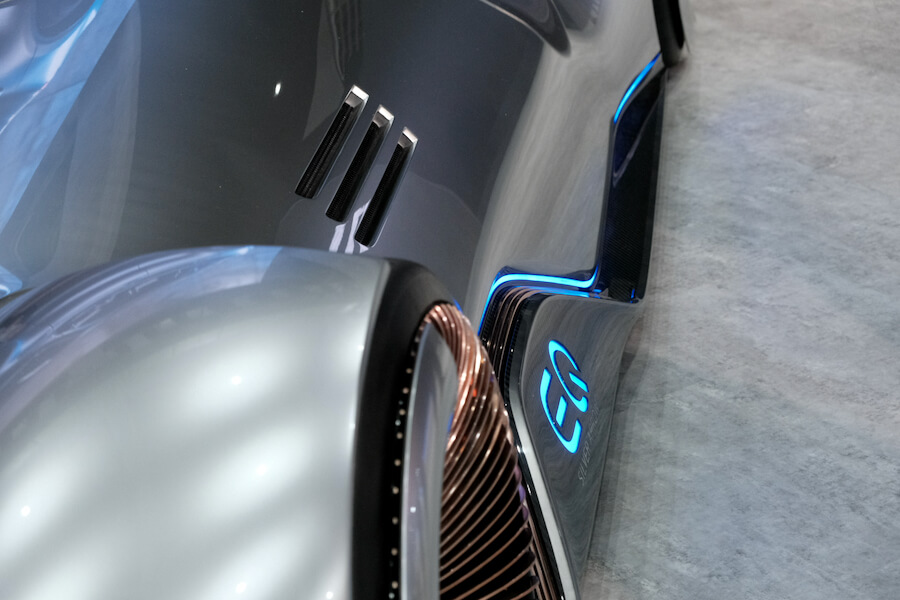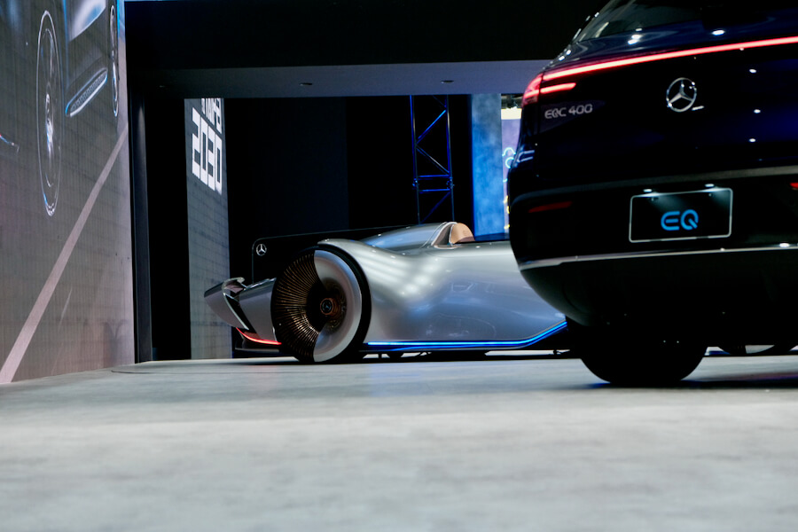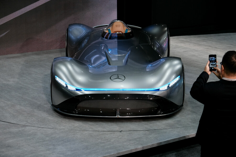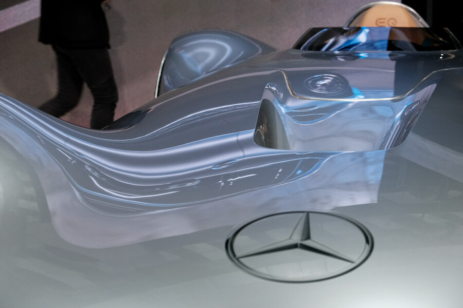 接下來不得不隆重介紹這位大人物了,有來看車展如果漏了這台可說是白跑一趟了,這是賓士還從國外請來了以Electric Intelligence主軸的最終形體,就是眼前這輛掀開蓋布的Vision EQ Silver Arrow銀箭號,向1938年W125單座GP賽車致敬的銀箭,夾帶著集團最新技術及設計而誕生,沒開玩笑,揭開的那霎那,我差點要淚滿盈匡,心中充滿各種衝擊吶~