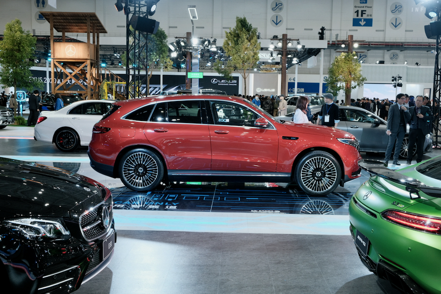 是的,歡迎來到神秘兮兮的會場,繞行一周所到之處皆能一賭高貴銀色蓋布的風采,大概能猜得出來是EQC吧,畢竟最近老兄廣告可是打得兇啊~