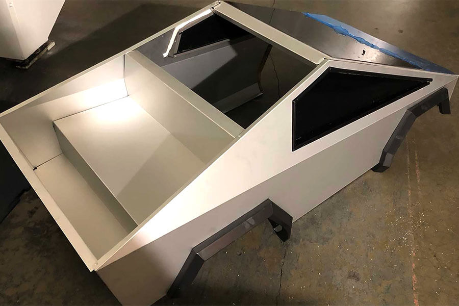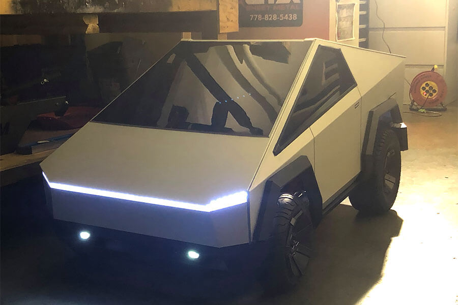 等不及真正的特斯拉電動皮卡要到2022年才會上市,在加拿大開設GTA Sheet Metal鈑件公司的Frank Sachsenhausen決定運用自身專業,以鋁合金鈑件自製一台迷你版Cybertruck。按照1:4等比例複製,這位加拿大父親不僅完美重現了Cybertruck奇特的外型(雖然只有兩扇車門),就連特斯拉必備的電動元素也透過充當底盤使用的電動兒童卡丁車忠實呈現。