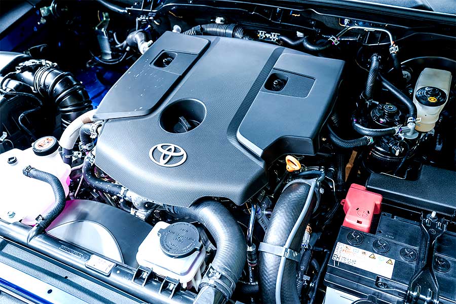 Hilux裝載這具2.8升四缸柴油渦輪引擎,身懷175匹馬力及45.9公斤米扭力,帳面數據差Ranger的200匹馬力及51公斤米有段距離,配上6速手自排變速箱,好在經廠方摻入輕量化及高剛性材質良藥配方,體態(2.1噸)輕上對手不少也輔佐了加速力道的湧出;開啟Power Mode能明顯感到變速箱用盡吃奶力運行,但柴油聲躁老問題則依舊猶新,隨著轉速緩慢上升帶來的引擎震動及騷音,恐怕只讓我不自覺地放鬆油門,個人不才猜想面對競敵強大的引擎調教下,Hilux勢必要在這關卡燒掉不少腦細胞對應了。