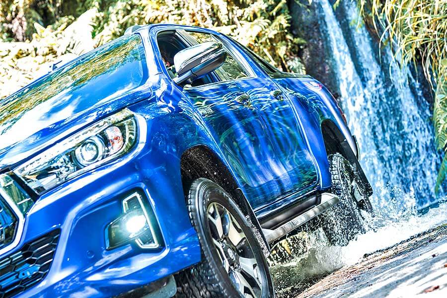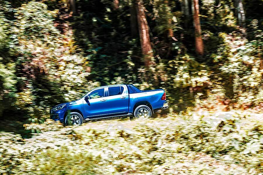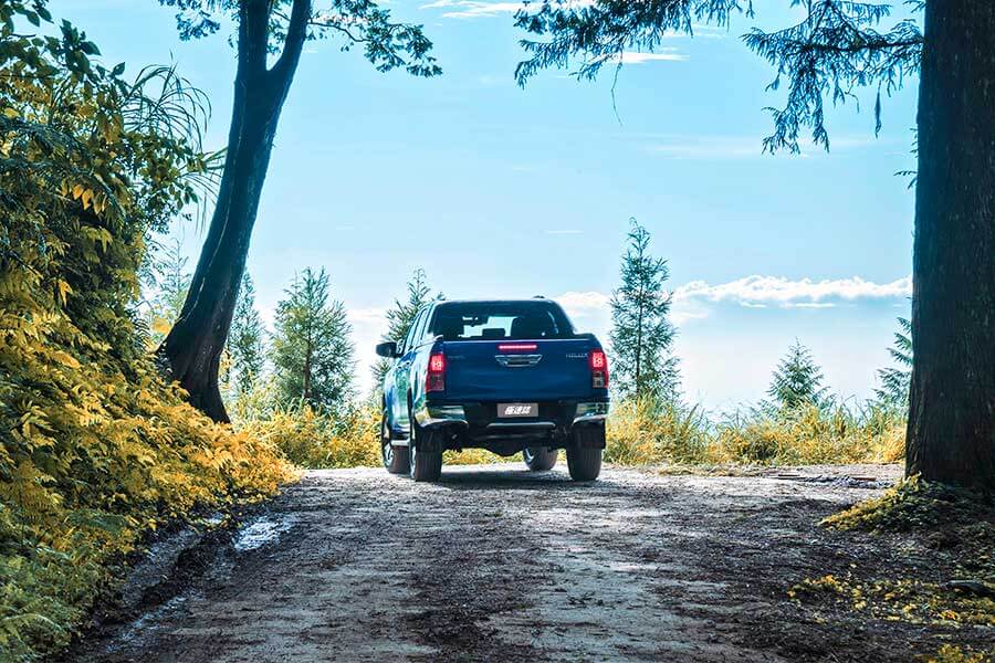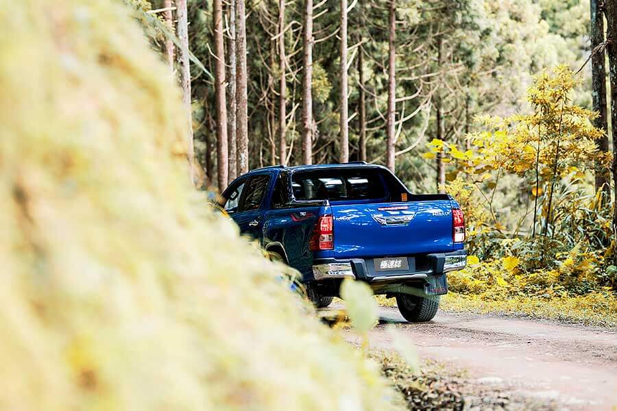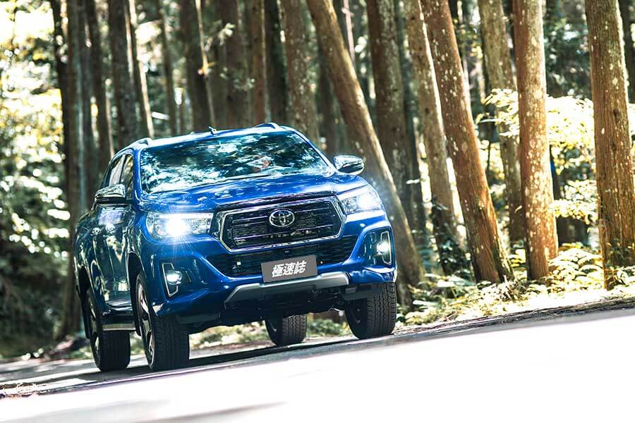 動力雖差人一截,但車體剛性及下盤倒是超乎個人預期,Hilux用上了大樑底盤,懸吊系統則是前雙A臂及後葉片彈簧(附減震筒)設計,強調大量用上1500Mpa高強度鋼材及最新雷射焊接技術增加焊點,強韌的體魄在林道上能發揮百分百功力,原廠裝載的避震阻尼對於鋪裝道路上過於硬朗也敏感,但透過四輪驅動附加力箱的運用,甚至在透過後軸差速器鎖定,穿過任何破石爛泥尚未聽聞Hilux發出半點哀號尖叫聲。