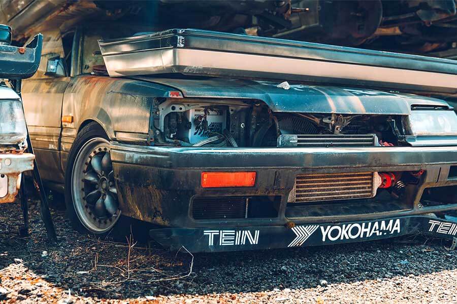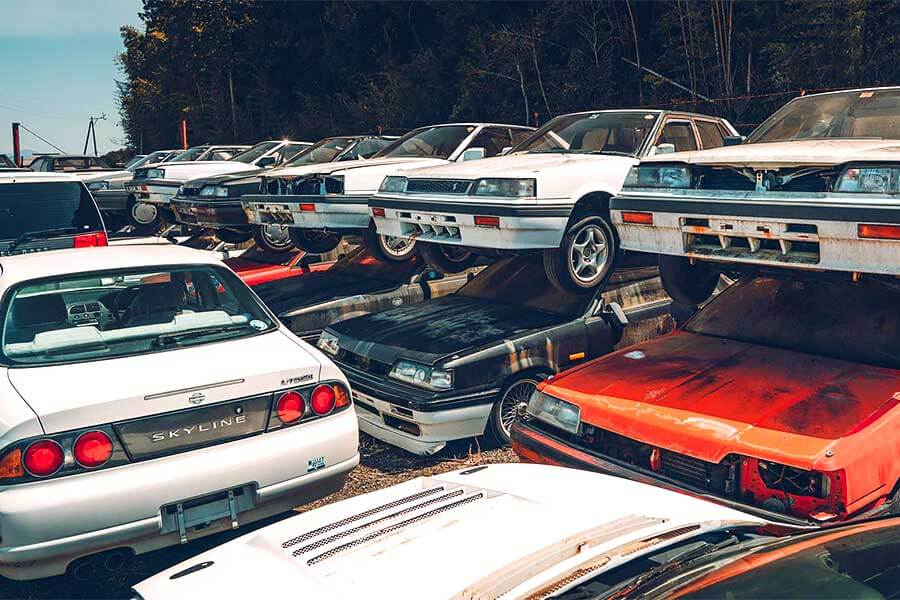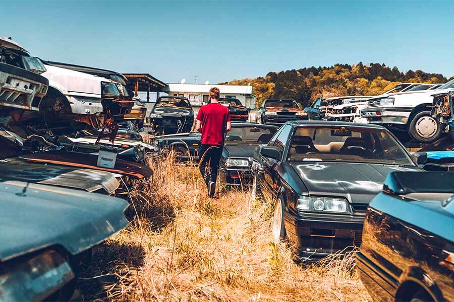 單是眼前這道不知通往天堂還是地獄的生鏽上鎖大閘,已夠我懷疑這裏是汽車煉獄。大門後面靜靜躺著超過400部開膛破肚的R31日產Skyline,有條不紊地疊羅漢形成一片好像陰森俄羅斯方塊的場面。好一個恐怖情境,背景中卻可見丘陵連綿起伏,稻田鬱鬱蔥蔥,其間零星散落著一些非常不起眼的工業建築。更奇怪的是這堆JDM廢料原來全部屬於同一個人,一位未能守時現身的男子。