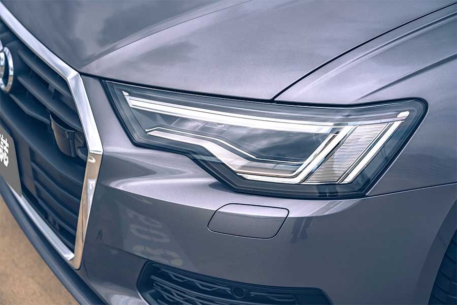 雖說乍看之下跟七代A6並無太大差異,但這次全新改款A6同樣承襲Audi Prologue概念車設計理念,將上一代舊有的方正線條發揮的更加淋漓盡至,廠方將它刻劃出更多的鋒利銳角,在優雅的A6車格上散發出更多的肌肉線條。最為顯著的便是挺直多角的車頭設計,融合了扁趴的單體式盾型水箱護罩,尺碼自然是比之前大上不少,我想這也是各家廠商的必經之路吧(笑)~ 奧迪這次將高一階的矩陣LED極光頭燈列為Premium規格標配,但我更建議再掏出4萬元攻頂最高規的HD高階矩陣LED頭燈,除了能提供更精準的照射能力外,還能奉上離/返家的照明展演多賞心悅目。對了,尚能加價5萬元直達S Line Look便能煥然一新~