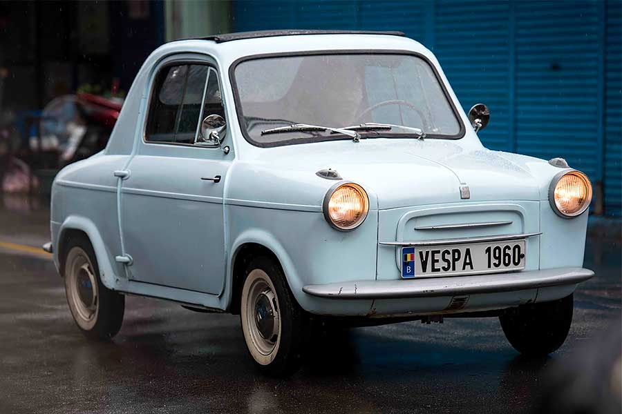 偉士牌有史以來絕無僅有的四輪作品Vespa 400。僅400c.c.後置後驅二衝程雙缸動力與三速手排設定,說明了這架13匹馬力稀客並非多麼驚人的性能操控腳色。但空氣間瀰漫的淡淡二衝機油味,卻充斥青澀學生時代對2T速克達的悸動回憶。