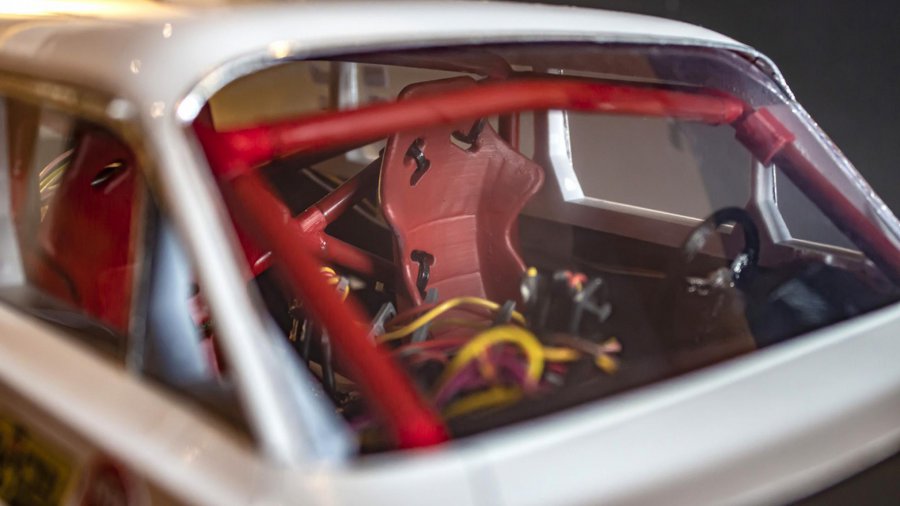 特別的是這輛模型車的製作方式,從車身、懸吊及輪子,甚至輪胎皆透過200小時以上的3D列印而成,唯一只有底盤是經過CNC切削過的鋁塊形成,底盤也透過打孔降低車身重量減輕負荷,傳動系統則採用3D列印的皮帶驅動,除了能減少噪音之外,官方還模擬出汽車引擎聲響、排氣管的爆裂聲及避震系統作動回饋聲,不單單只有傳統模型車上的視覺享受,在聽覺上也下了不少功夫~