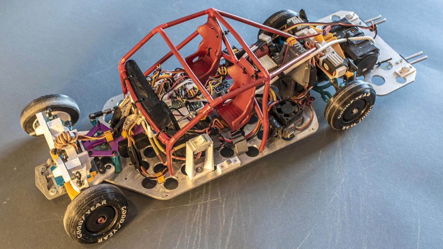 這輛以甩尾為前提的模型車,官方幫它掛上了主動式電子懸吊外,還能依照本身需求設定輪傾角度及反應回饋速度,利用機板上的加速計則能精準控制四個輪子的動態表現,當這輛復古模型車在高速運轉時,能模擬出相當逼真的車身動態,操控者更能以更細膩的操作手法控制它的一舉一動。