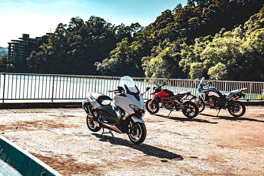 看來Jason跟Edward對它們挑中的車都相當滿意,Hypermotard的下盤功夫確實達到爐火純青之境,那具937c.c.的L2引擎依舊保有杜卡提多年來的激情性格,上手程度跟以往的老豬腳蹄有著相當大的差異性,老杜迷們根本不削一顧也不無可能,但是車子的造詣雖著天時地利人合所演變,我想Hypermotard正是符合大多數現代人所認知的需求;而路上常見的T-Max,根據它市占率如此高漲的情況下,除了可以提供一定程度的運動性能外,最重要的是能帶給車手極大的便利性,這也是大型速克達的極大優勢,也是檔車一向無法達成的詬病;而又大又高的非洲雙,駕起來是威風凌厲毫無問題,但面對小一號的亞洲人來說確實沉重了些,但承襲經典的設計元素一個不缺的前提下,非洲雙擁有良好的越野適應能力及性能,更是越野迷不可替代的經典~