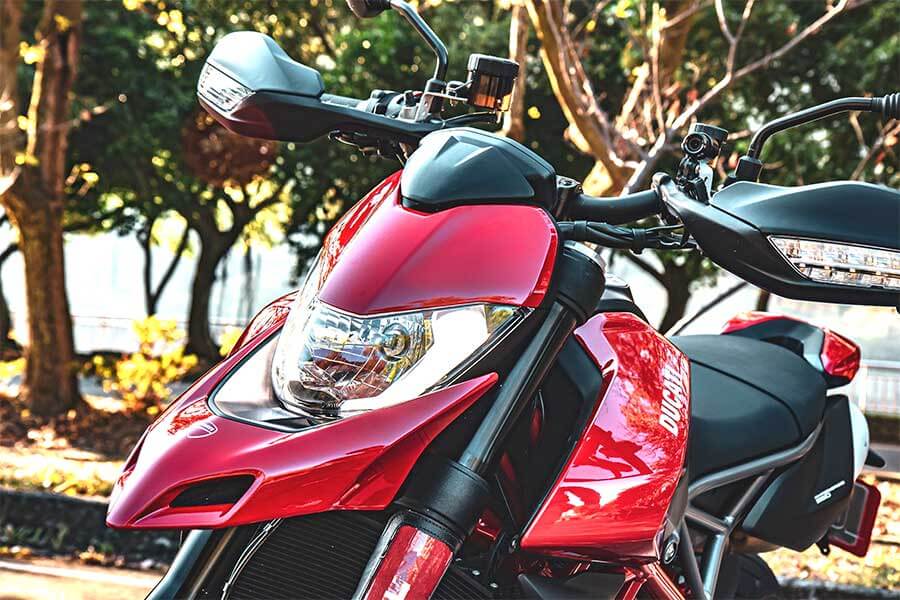 不過很值得玩味的是在此之前我從未騎過Hypermotard,不是說全無機會,純粹就只是自己臉皮薄……。好啦,算一算從我對它有印象到現在至少有十年的時間,如今終於得償所願,而且車型是剛發表的第三代版本,雖然Pierre Terblanche在初代Hyper量產沒多久就離開Ducati,但隨後的兩代仍延續了最初的特徵與輪廓,當然還有Ducati街車相當拿手的編織鋼管車架及強烈機械感。取車時代理商人員特別提醒我這車看起來雖然小巧,但座高比預期要高些,巷弄小彎停停走走要多注意(或許也可能是看我個子比較小的關係)。