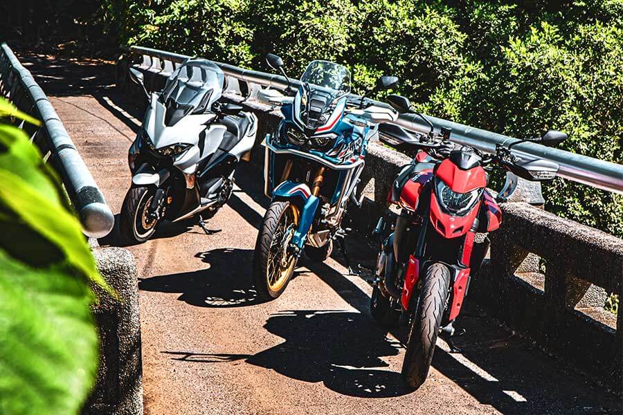 我也有趁機試了T-Max 530及AfricaTwin 1000,對於大羊我向來無感,但老實說這車真是好騎,但不能夠太逼迫它,畢竟就是一部大羊,想劈彎最好先將避震器升級一下,至於AfricaTwin 1000實在很難想像訴求多功能越野車的它可以如此大又重,我無法想像有人真會把它騎去越野,還是Hypermotard 950最好,容易上手且性能表現最均衡,不過在此要小小抱怨一下,回程為了趕時間連續騎近兩百多公里全無休息,屁股幾乎全無知覺……。