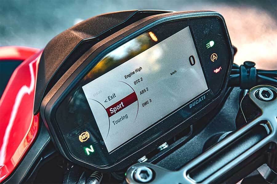 937c.c.的水冷雙缸引擎可輸出114匹最大馬力,乾重控制在179kg,光是移車就相當輕鬆全不費氣力,這一點讓我相當欣賞,車子一動起來依然是預期之中的典型豬腳蹄風格,那具Testastretta 11°引擎無時無刻都充滿活力,拉轉一氣呵成,隨著速度加快轉向愈靈活的同時,路感回饋與抓力始終不減,上路才10分鐘我輩已深深著迷且有相見恨晚之感。
