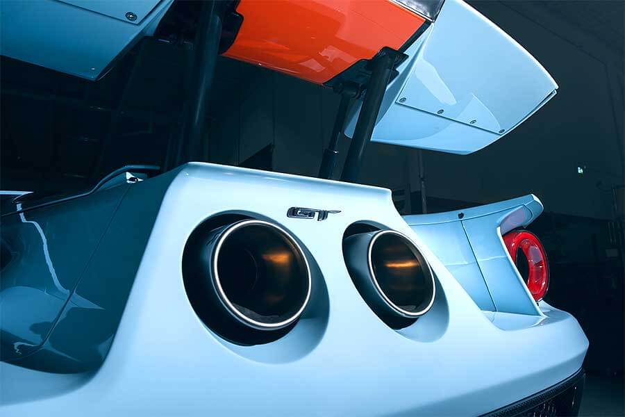 除了色彩差異之外,2020年式Ford GT最大的變化則是動力獲得了升級。透過引擎重新校正,並且換裝新的活塞冷卻通道與高能量點火線圈之後,車載3.5升V6雙渦輪引擎動力輸出從原本的647匹躍升至660匹,一口氣增加了13匹馬力。此外以往只提供選配的Akrapovič鈦合金蠍子管,在2020年式福特GT上也被改列為標準配備,既能藉此減輕車重,還能發出熱血激昂的排氣聲浪。與此同時,福特也透過新的通風管設計,以及加大50%的中冷氣提升冷卻效果。最後,原廠也重新調整了GT在賽道模式的懸吊設定,以利在高速賽段時能給與駕駛更好的操控回饋與感受。