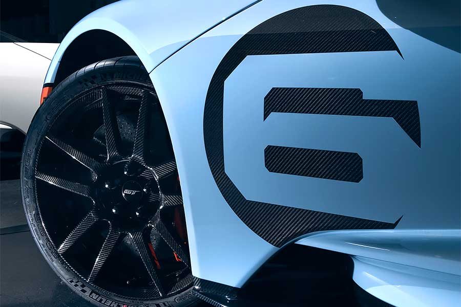 當然,如果覺得這赤裸裸的Ford GT Liquid Carbon太過於自然的話,福特還是提供有各種絢麗的色彩選項,無論是紅、綠、黃,或者經典的橘藍雙色Gulf塗裝(Heritage Eidition)通通都有。另外,碳纖維輪圈在Heritage Eidition版GT上則須額外選配。
