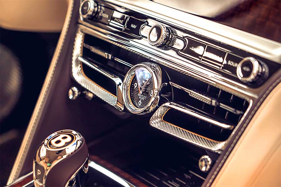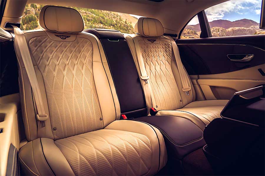 正因為處之泰然,讓我有更多餘裕欣賞賓利典型的內裝鋪陳,如何將皮革、木頭、金屬材料融入現代化裝備之中。中控檯架構依舊維持典型的賓利風格,鋼琴烤漆內飾板配上觸控功能的12.3吋整合介面提供豐富選項,也可以見到USB插、手機無線充電(選配),也能搭配手機切換成CarPlay介面,不過這些仍搶不走座艙中最美麗的風景,就是3D立體剪裁的皮革座椅與內飾,那凹凸有致的菱格紋車縫線若搭配高反差的雙色皮料(選配),交織出賓利特有的華麗風範,而且做工之細膩猶如藝術品,讓我無時無刻帶著敬意。